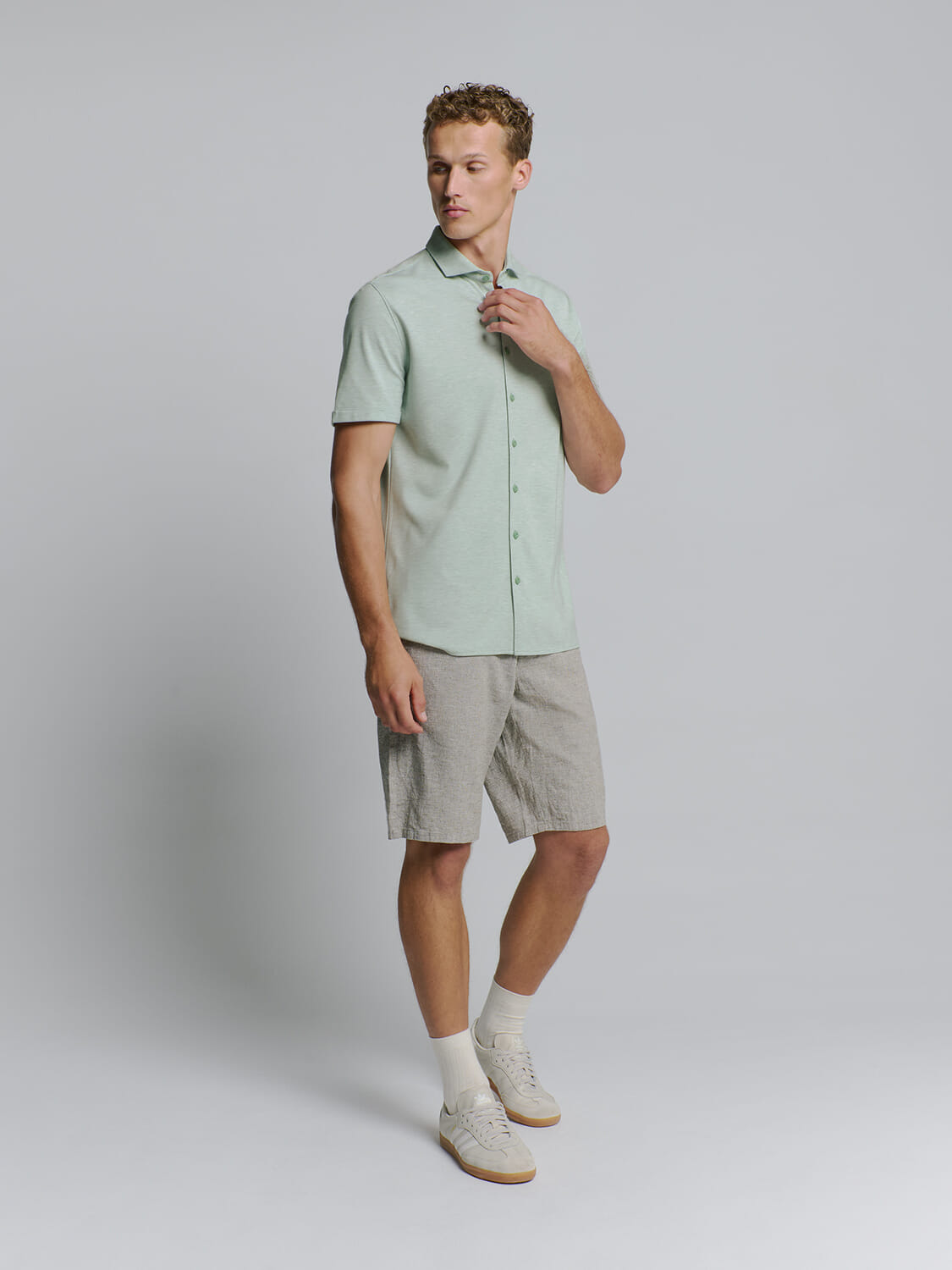 Dit No Excess overhemd is een casual heren overhemd met een effen patroon. Het heeft een opstaande kraag, een polokraag en knoopsluiting. De pasvorm is regular, met korte mouwen, ideaal voor een ontspannen gelegenheid. Perfect voor een stijlvolle, moderne look.