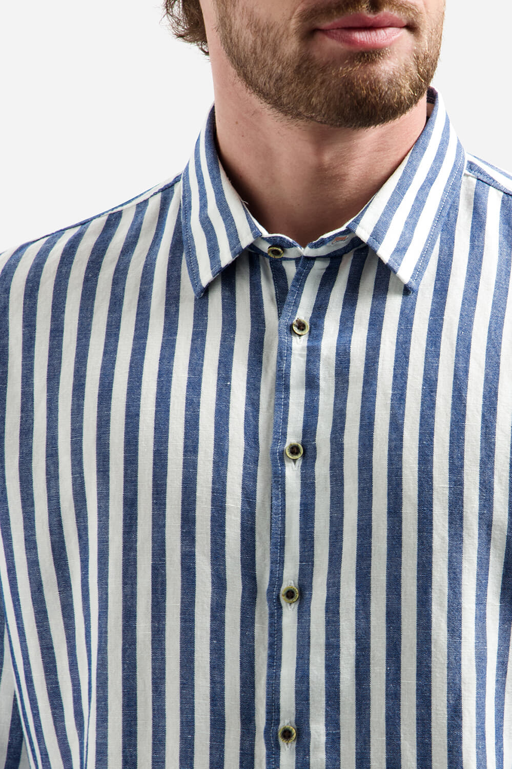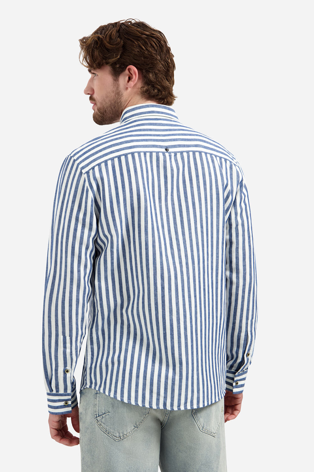 No Excess Overhemd Vertical Big Stripe With Line Indigo