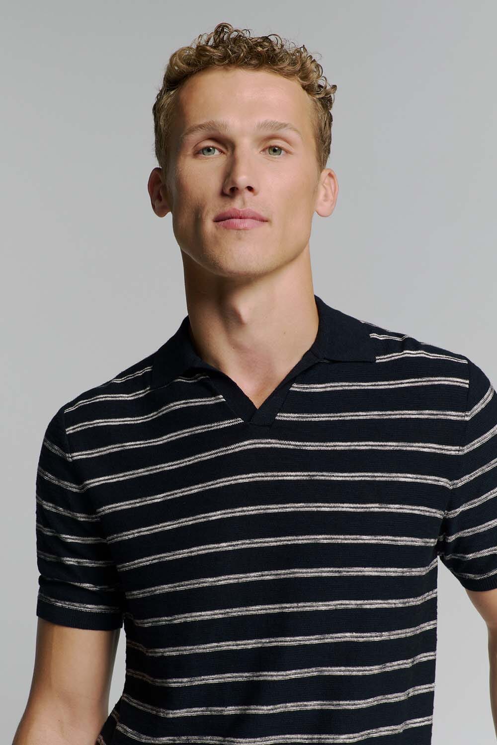 De Polo Stripe van No Excess biedt een casual stijl met een polokraag en regular fit. De korte mouwen en het streepjespatroon maken deze heren polo ideaal voor elke casual gelegenheid. Perfect te combineren voor een comfortabele en modieuze uitstraling.
