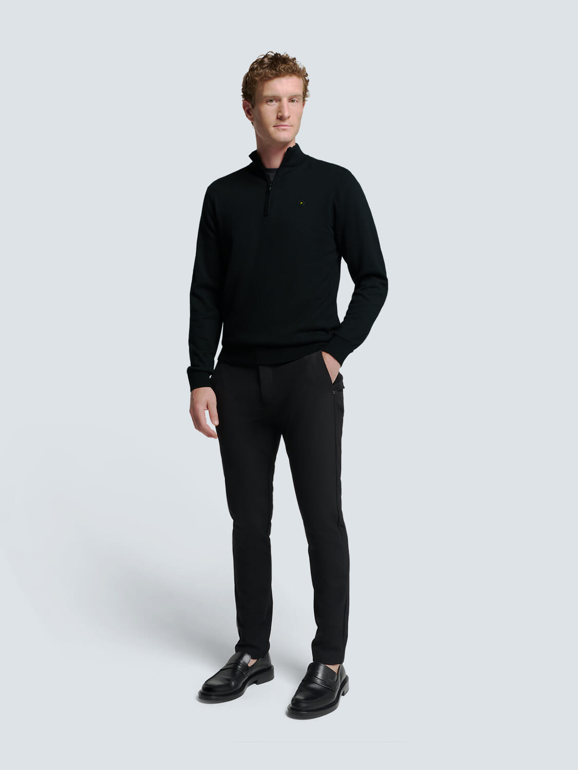 • Pullover Half Zip 2 Coloured Melang Zwart