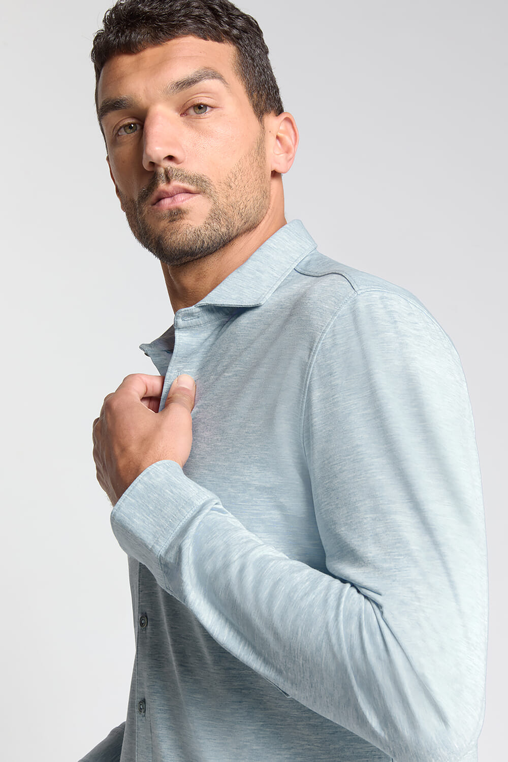 Het Shirt Jersey Melange Stretch van No Excess is een stijlvol business overhemden met een button down kraag, normale taille en lange mouwen met manchetten. Het effen patroon en de zakken op de voorzijde maken het tot een perfecte keuze voor nette gelegenheden.