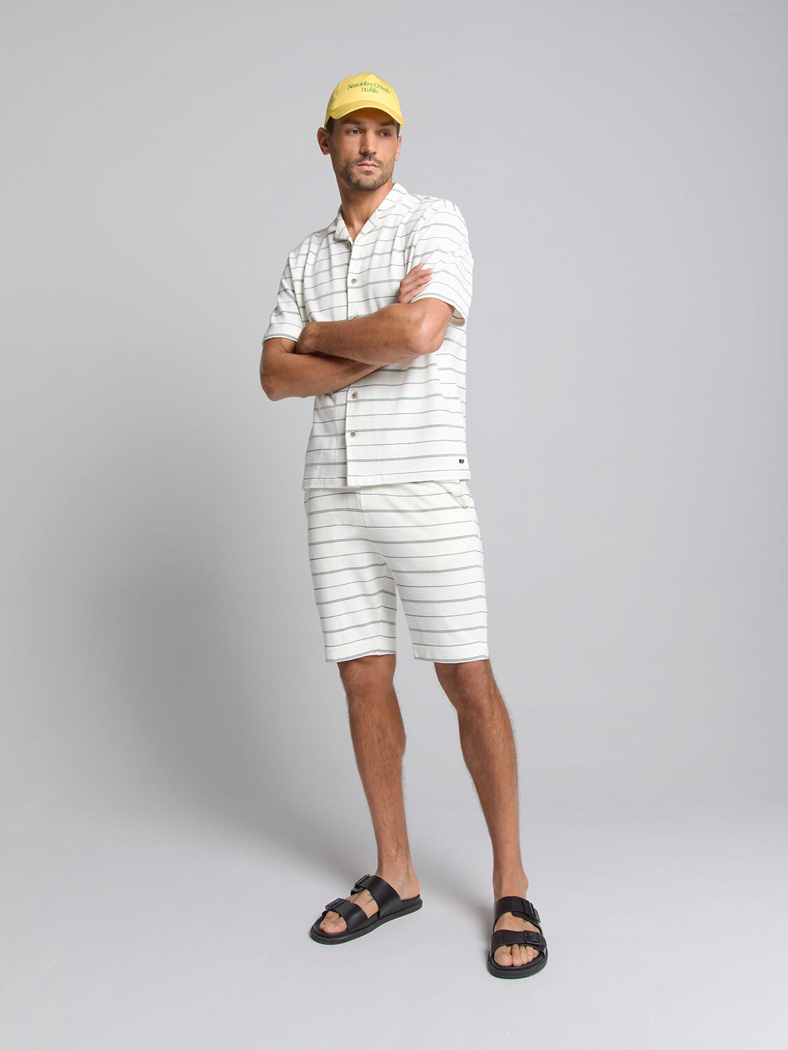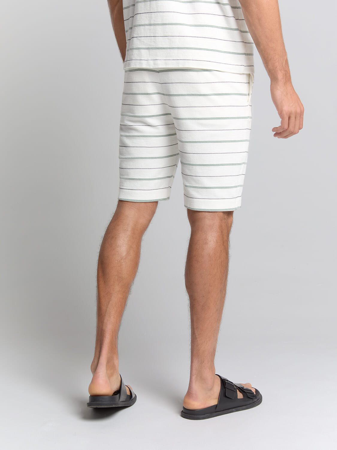 De Short van No Excess is een casual heren short met elastische taille en een koordsluiting voor optimaal comfort. Het stijlvolle streeppatroon en de achterzakken maken dit kledingstuk perfect voor een ontspannen uitstraling en functionele veelzijdigheid in elke garderobe.