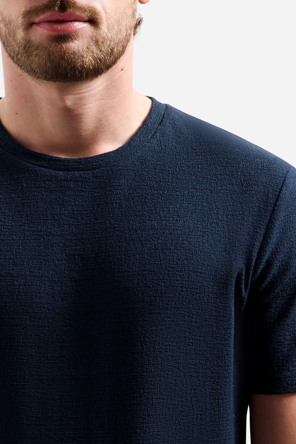 No Excess T-Shirt Crewneck Solid Jacquard Navy
