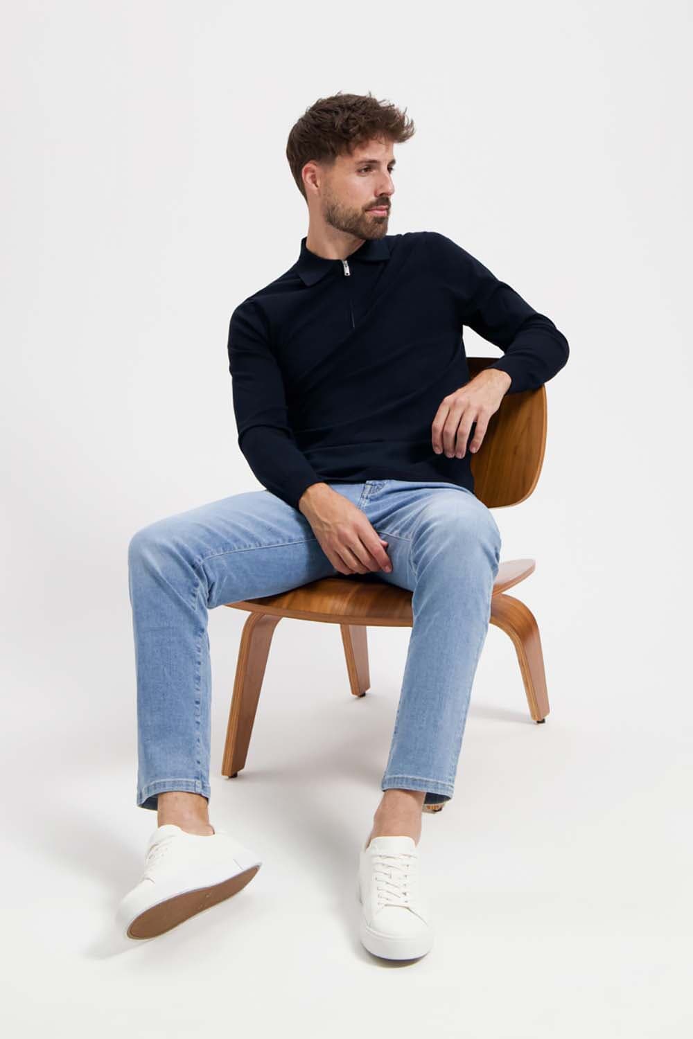 Jeans 5-Pocket Indigo van North.84 biedt casual stijl met een normale taille, voor- en achterzakken, en een knoop- en ritssluiting. Deze straight fit jeans heeft een slimfit pasvorm en een effen patroon, perfect voor elke gelegenheid.