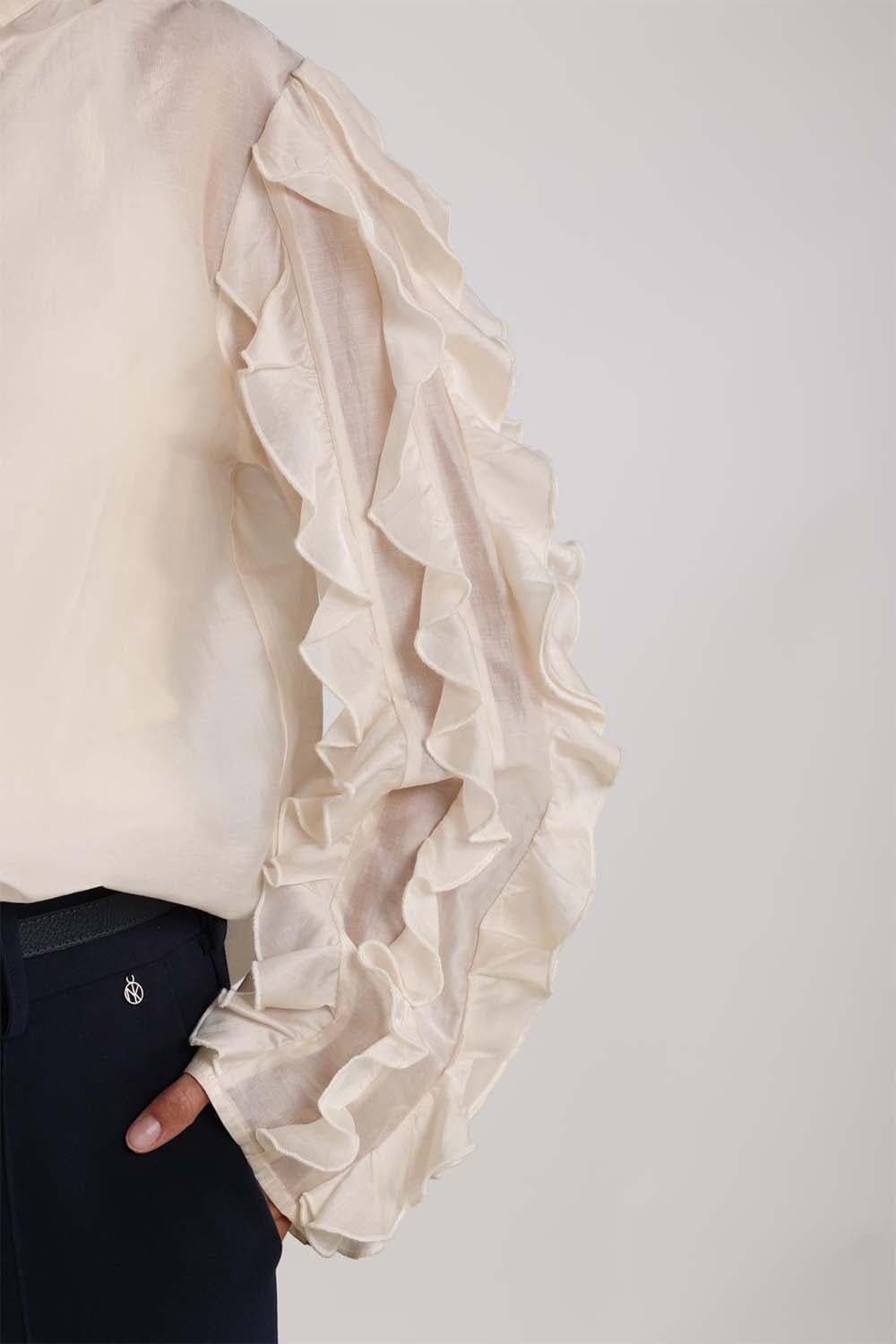 Blouse Margriet van Nukus is een stijlvolle dames blouse met een verfijnd ontwerp. Deze blouse heeft een opstaande kraag en V-hals, lange mouwen met knoopmanchetten en een trendy geblokt patroon. Perfect voor nette gelegenheden en biedt een elegante uitstraling.