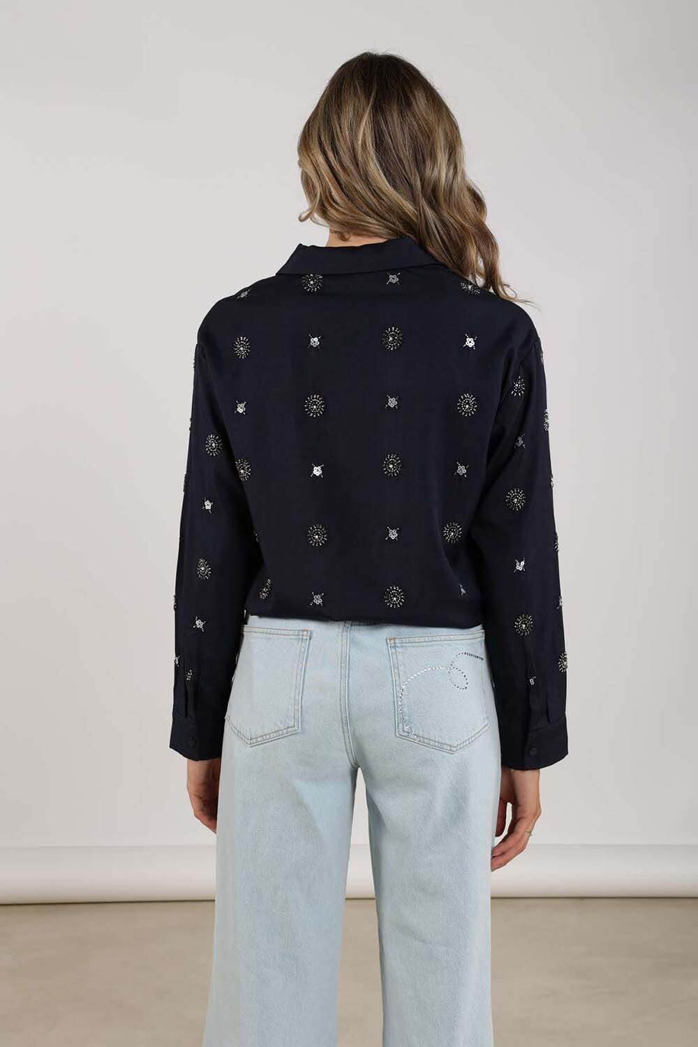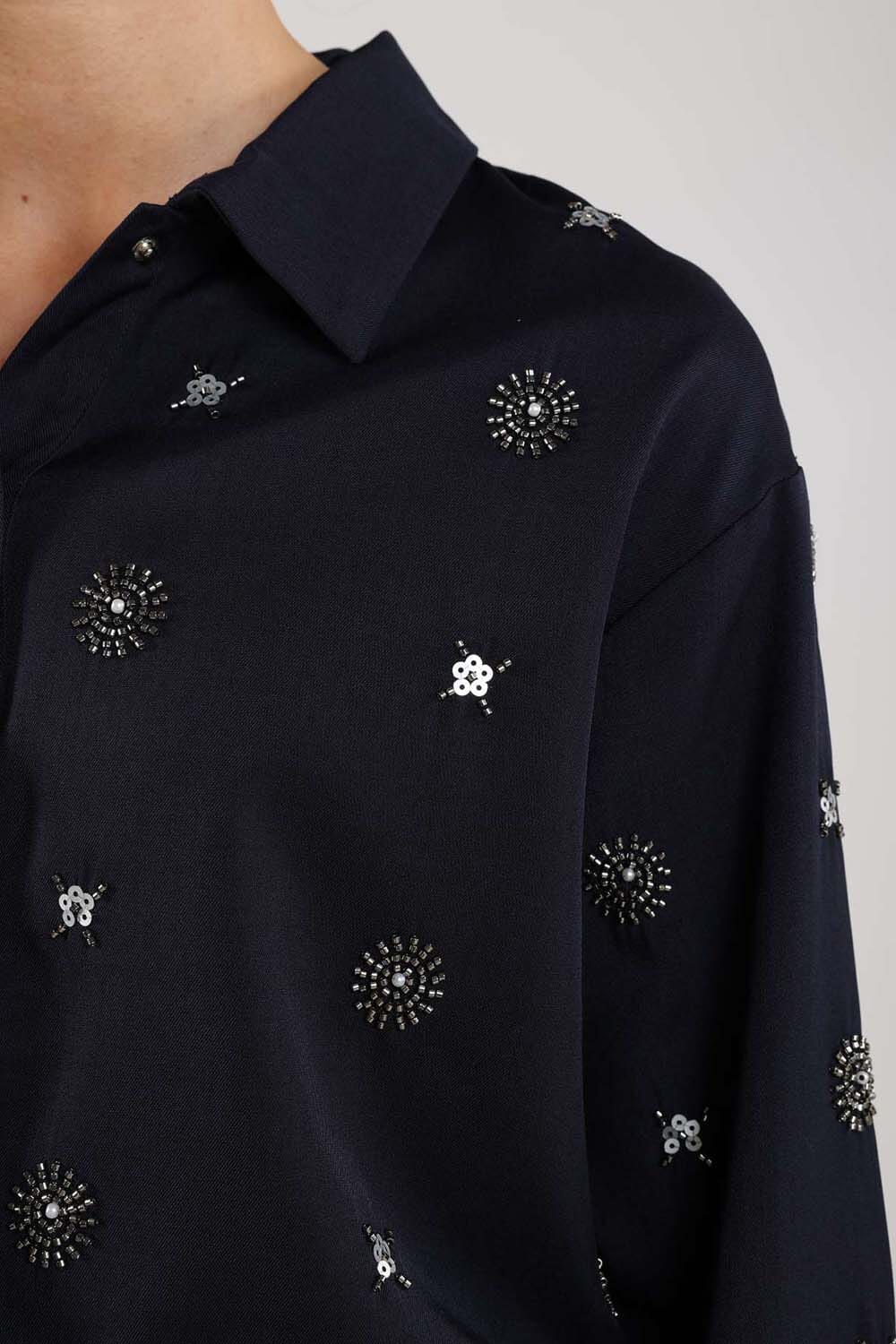 Blouse Newport Embroidery van Nukus is een casual dames blouse met een button down kraag en lange mouwen. Het heeft een all-over patroon met knopen als sluiting, waardoor het een verfijnde uitstraling krijgt. De regular fit zorgt voor comfort en stijl.