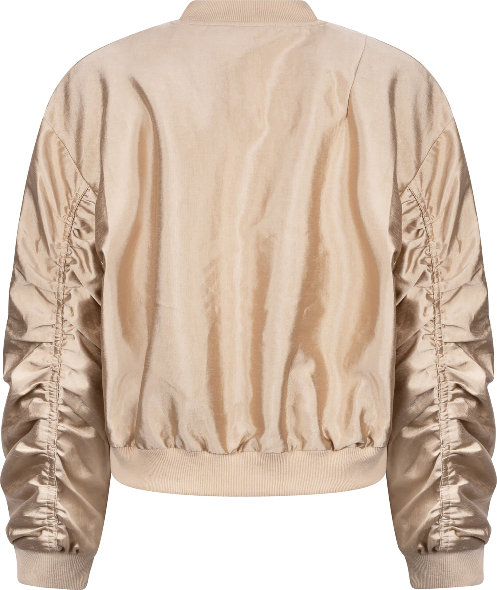 Het Bomberjack Babette van Nukus is een stijlvol en casual dames bomberjacket met een opstaande kraag en handige zakken aan de voorzijde. De ritssluiting en de effen patroon geven het jack een relaxed pasvorm, ideaal voor een comfortabele en modieuze look.