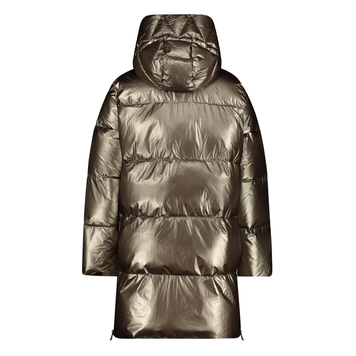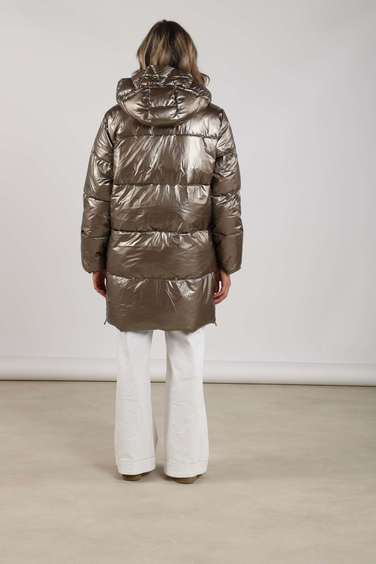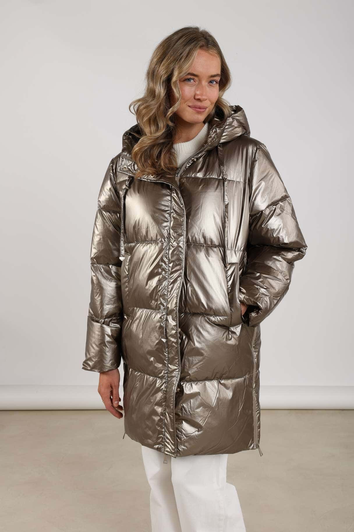 De Jas Tessie Metallic van Nukus is een stijlvolle gewatteerde jas met een casual, sportieve uitstraling. Deze dames donsjack heeft een capuchon en zakken op de voorzijde, en een 2-zijdige ritssluiting. Ideaal voor wie comfort en mode wil combineren.