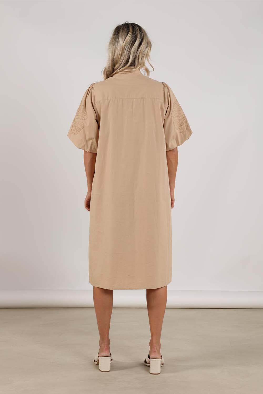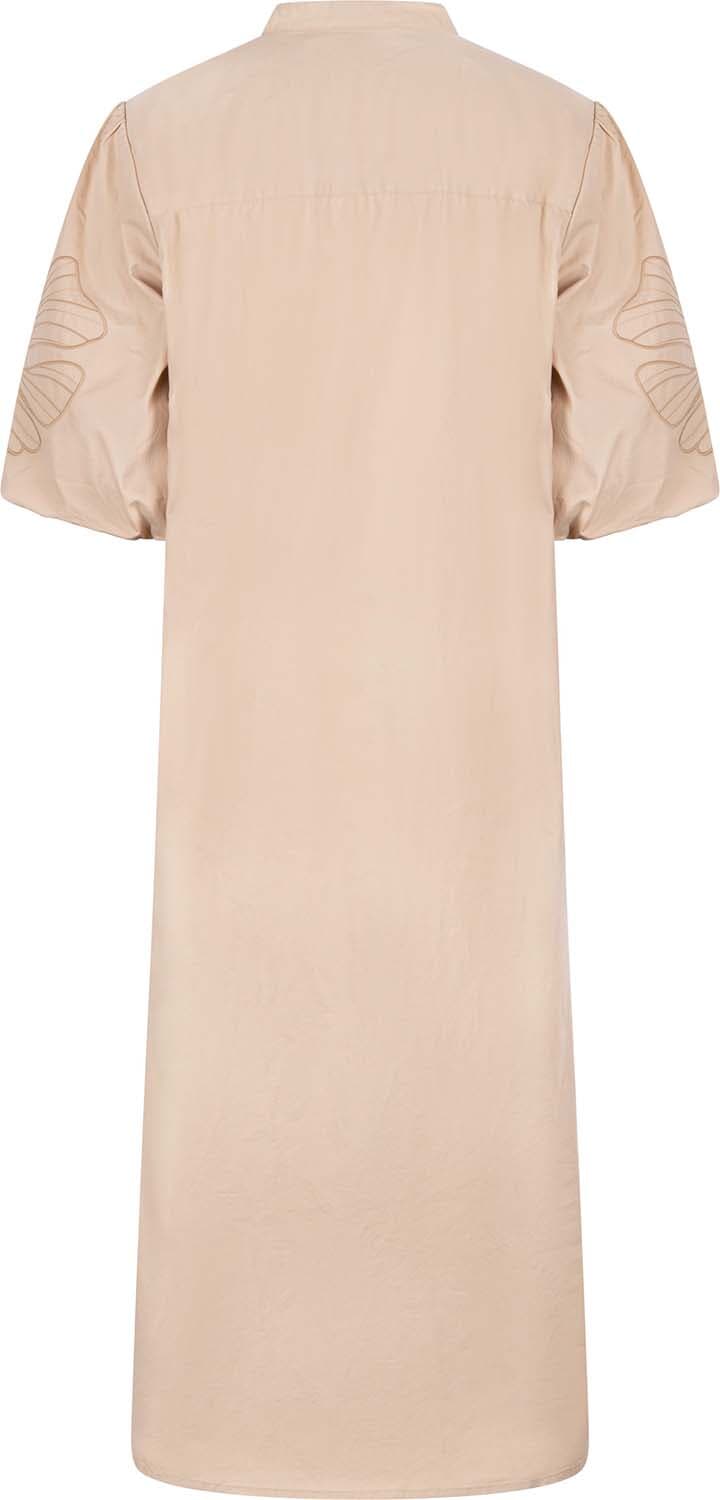 De Jurk Mayke van Nukus is een casual dames jurk met korte mouwen, een opstaand boord en knopen als sluiting. Het effen patroon en de normale taillehoogte bieden een eenvoudige elegantie, terwijl de midi lengte een veelzijdige optie biedt voor diverse gelegenheden.