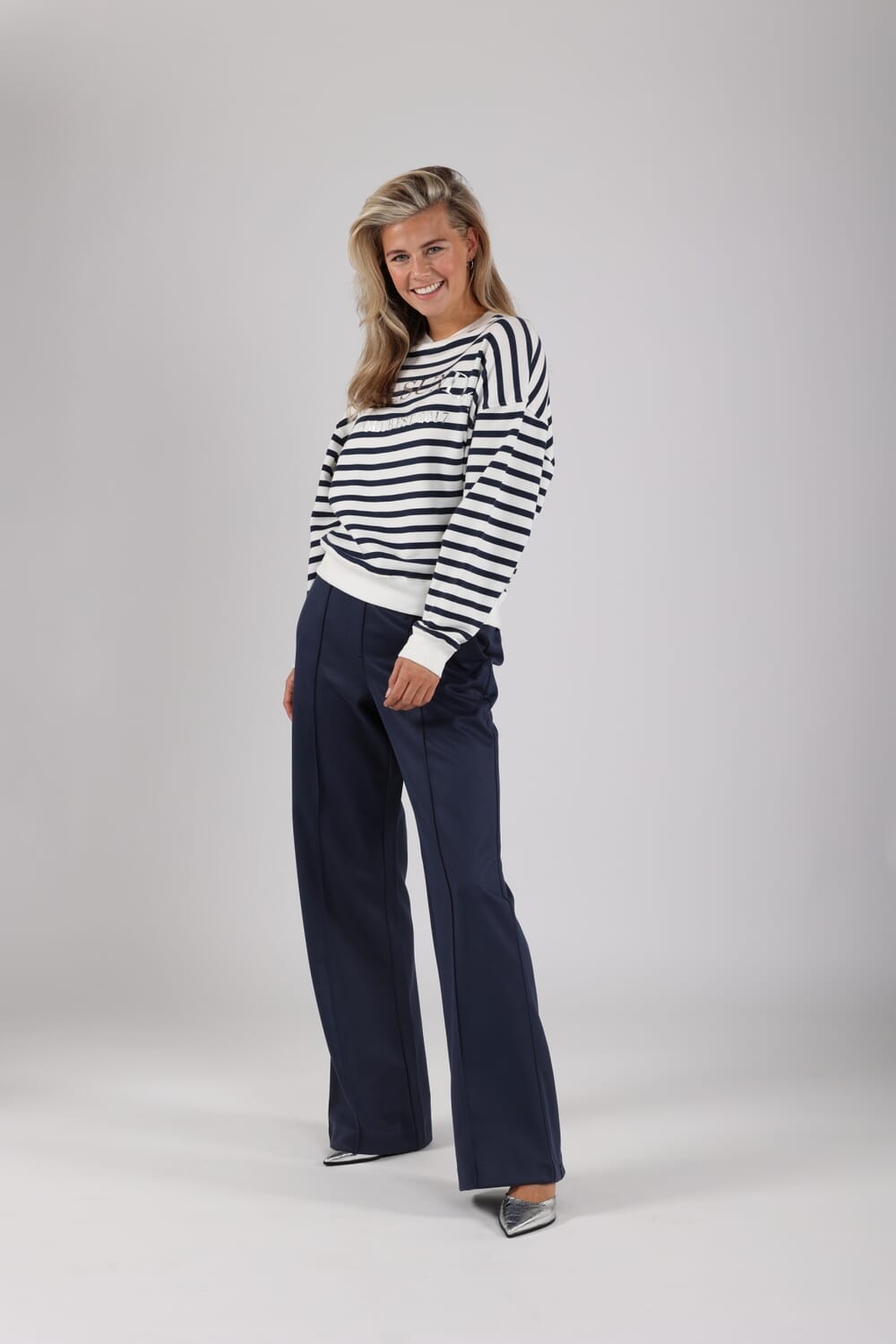 De Pantalon Jill Scuba van Nukus is een stijlvolle pantalon met een wijde pijp en een normale taille. Deze sophisticated broek heeft zakken aan de voorzijde en een verborgen zijritssluiting. Ideaal voor nette gelegenheden, combineer moeiteloos stijl en comfort.