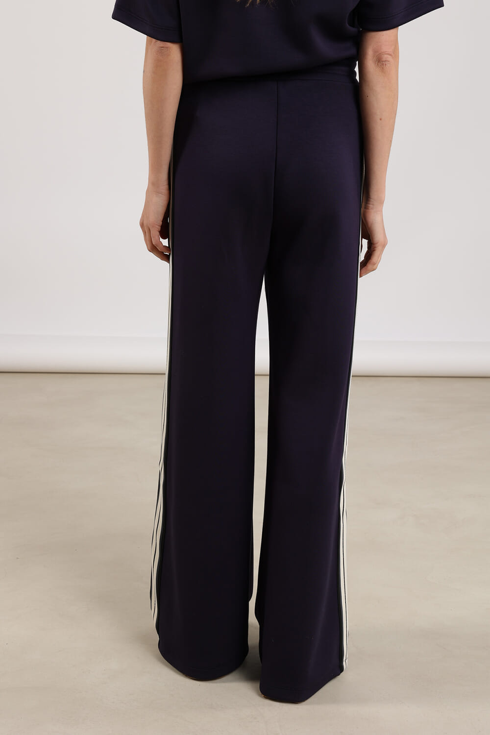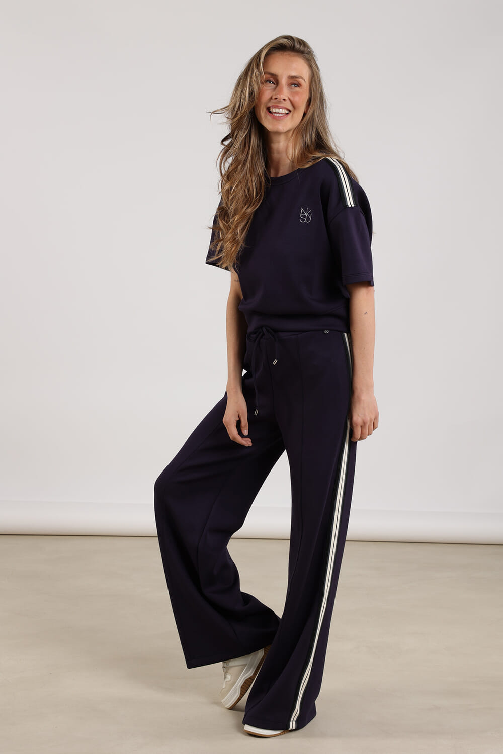 Pantalon Nikki Tape van Nukus is een verfijnde dames pantalon met wijde pijpen, normale taille en stijlvolle voor- en achterzakken. De gestreepte tape aan de zijkant voegt een modern accent toe, perfect voor elke gelegenheid.