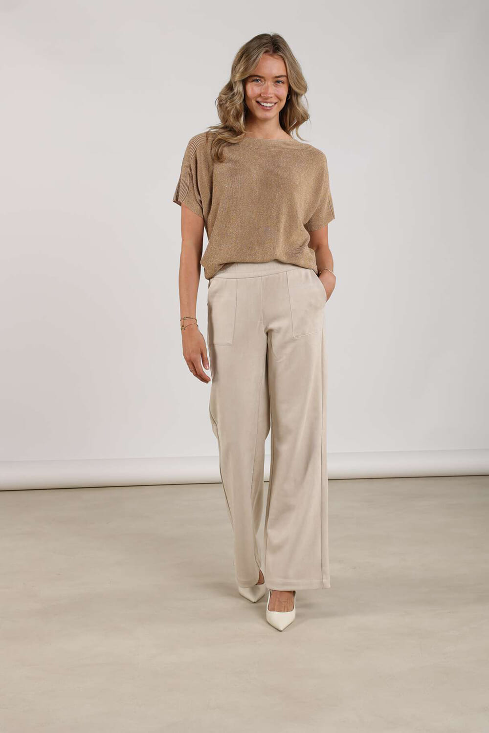 De Pantalon Trix Scuba van Nukus is een stijlvolle dames pantalon met een elastische taille en wijde pijpen, perfect voor een casual look. De zachte stof en het elegante ontwerp maken deze broek een veelzijdige keuze voor diverse gelegenheden, zowel formeel als informeel.