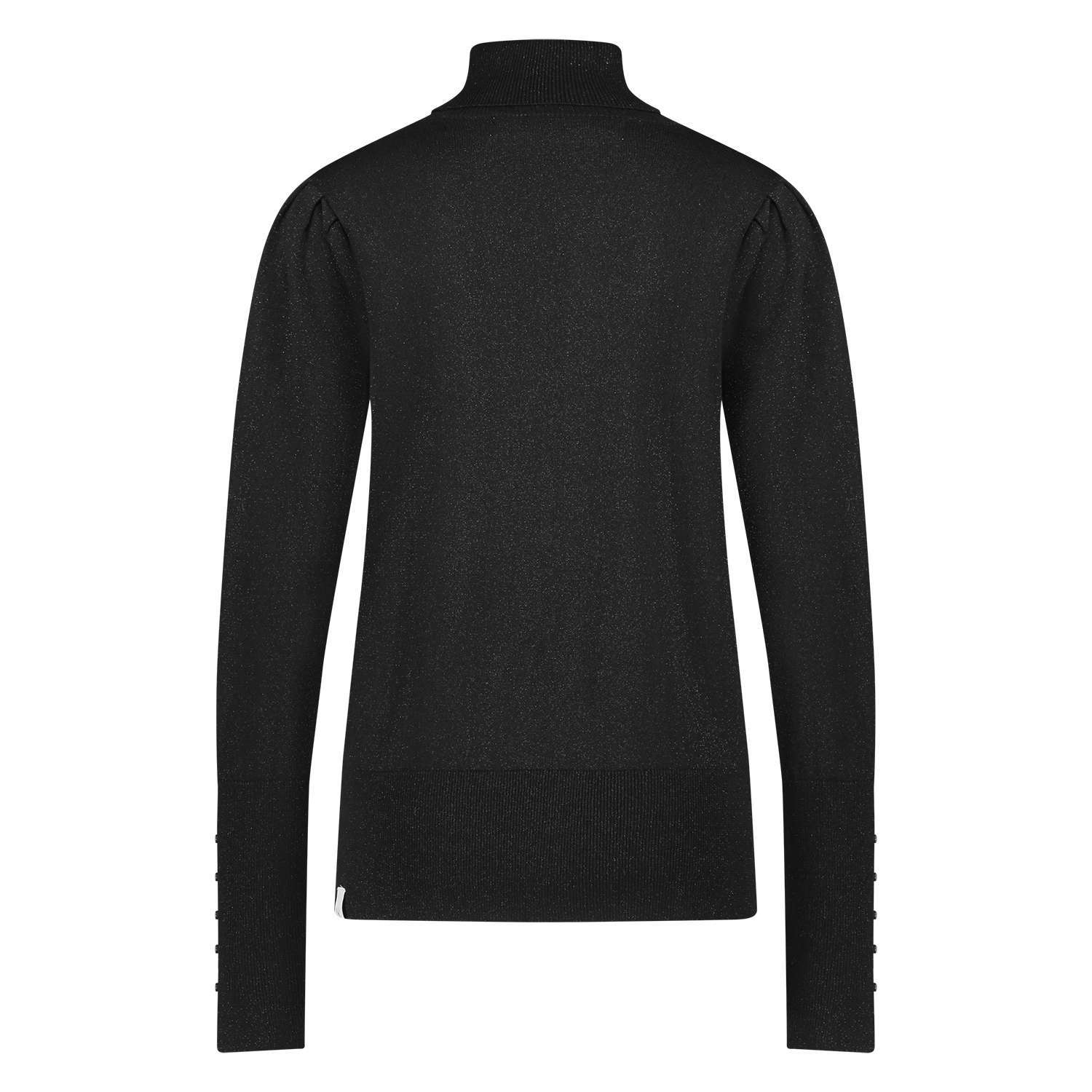 De Sylvia pullover kenmerkt zich door zijn elegante hoge col, een strak model en sierlijke knopen bij de polsen, wat een verfijnd detail toevoegt aan het geheel.