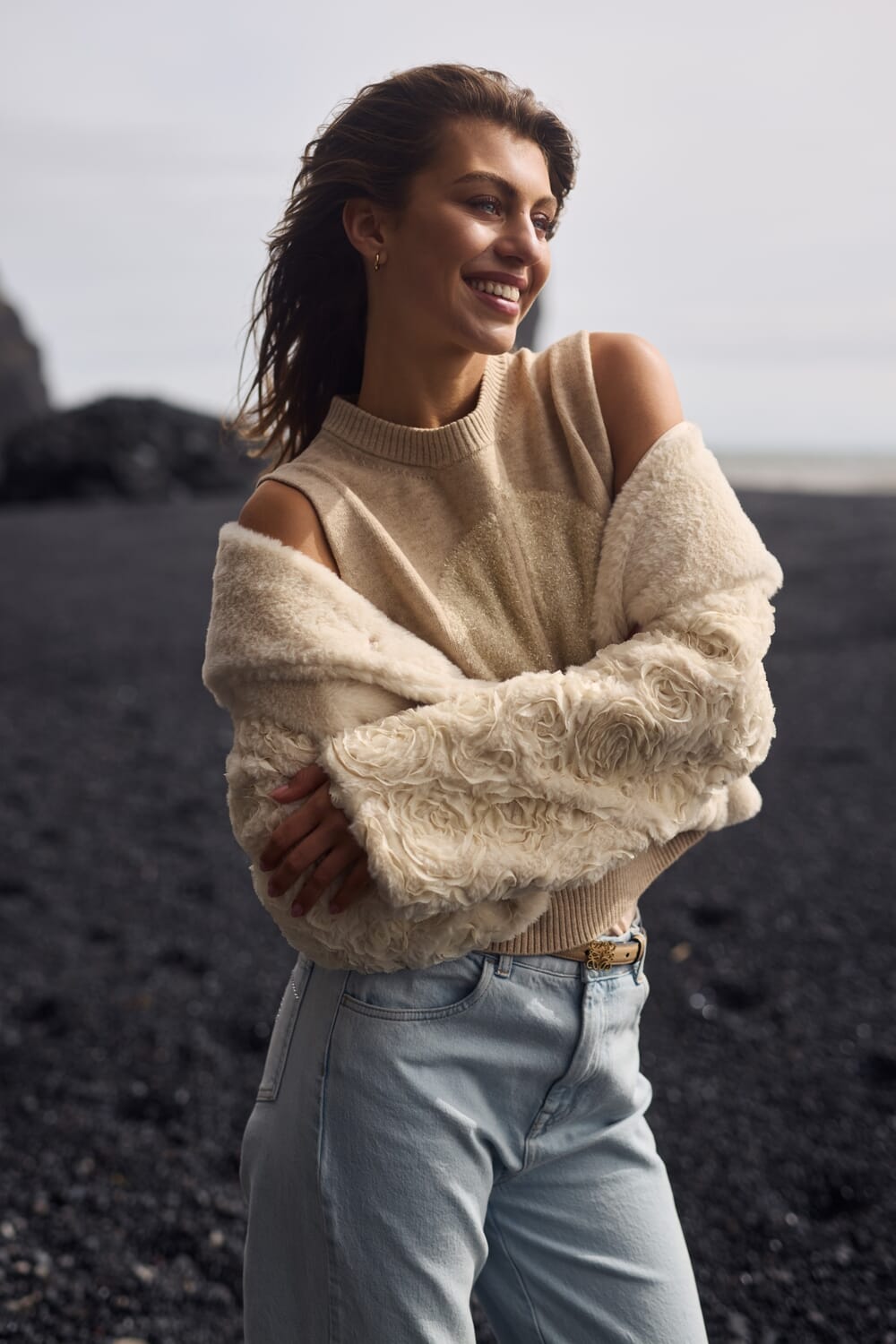 De Spencer Intarsia van Nukus is een stijlvolle dames spencer met een minimalistisch design en een ribgebreid mouwboord. De regular fit zonder mouwen en het effen patroon maken dit vest veelzijdig en toegankelijk, perfect voor een moderne garderobe.
