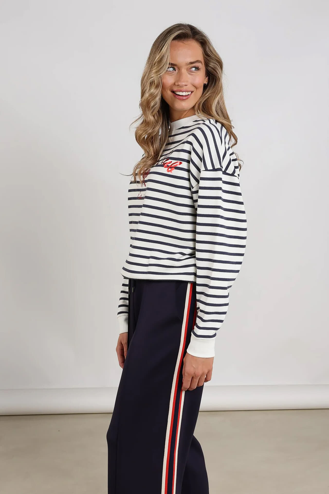 De Sweater Paige Stripe van Nukus combineert stijl en comfort. Deze casual dames sweater heeft een ronde hals, ribgebreide mouwboorden en een relaxed pasvorm. Het strepenpatroon maakt het een perfecte keuze voor een informele gelegenheid, terwijl de lange mouwen zorgen voor extra warmte.