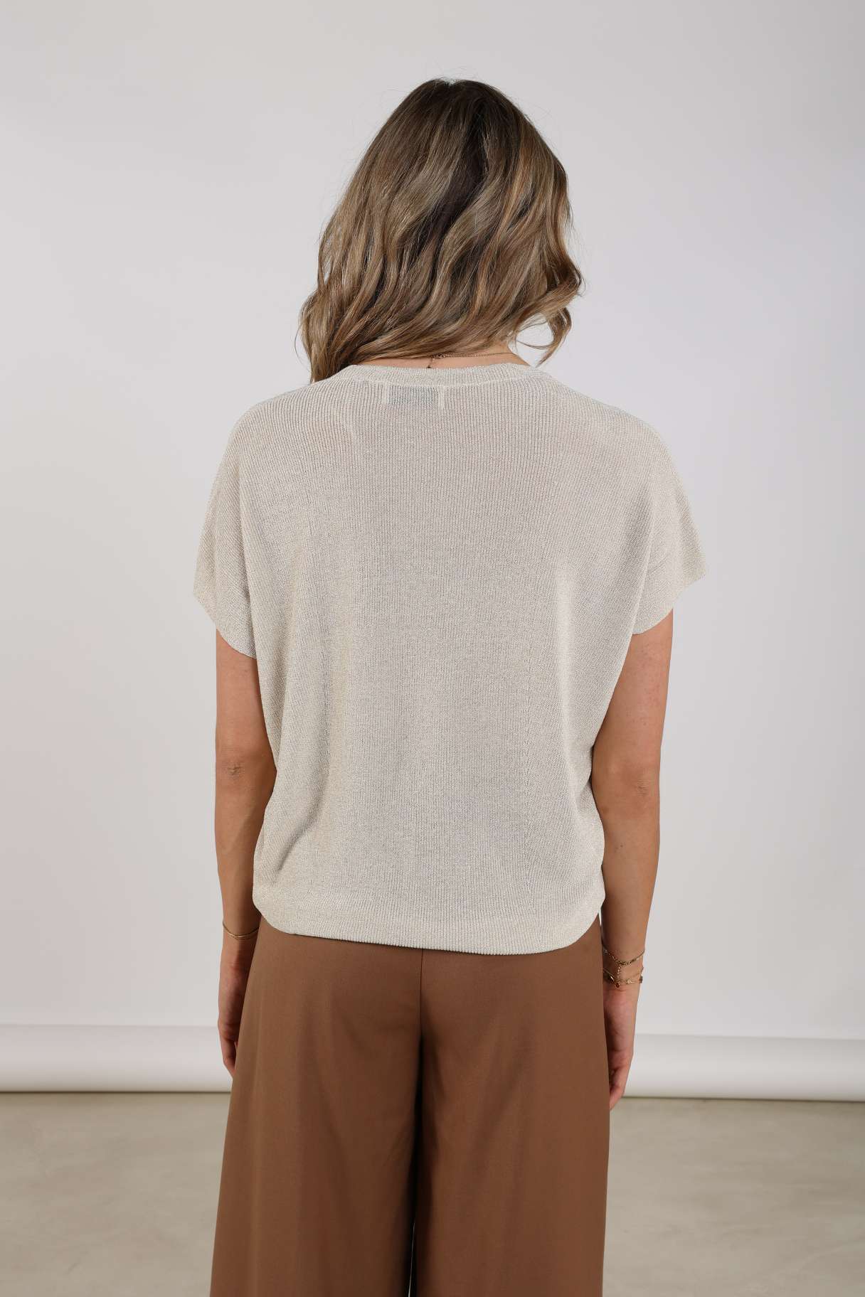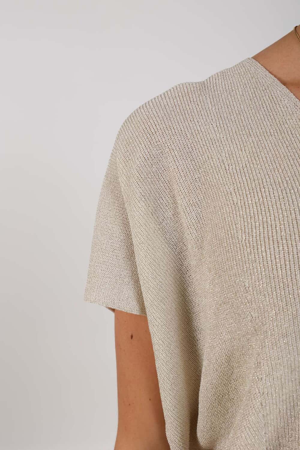 De Top Dina Lurex van Nukus is een dames t-shirt met een minimalistische stijl. Het heeft een ronde halslijn en een loose fit, wat zorgt voor een comfortabele pasvorm. De mouwloze stijl maakt het ideaal voor casual gelegenheden.