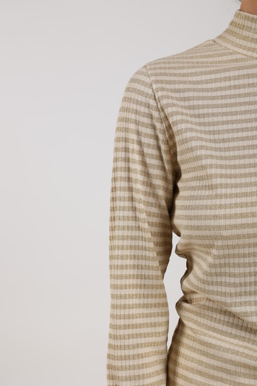 De Top Ivana Stripe van Nukus is een stijlvolle top met lange mouwen en een colhalslijn, ideaal voor casual of zakelijke gelegenheden. Het streeppatroon geeft een eigentijdse uitstraling, terwijl de zachte stof comfort biedt. Perfect te combineren met zowel jeans als rokken.