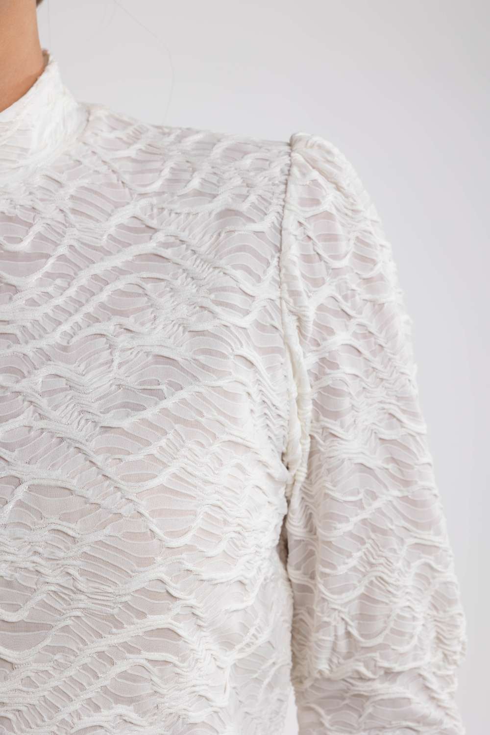 De Nukus Top Merida is een stijlvolle toevoeging aan elke outfit. Met een verfijnd kraagje, elegante ballonmouwen en aansluitende polsen, voegt deze top een vleugje klasse toe aan je look. Het maakt je outfit helemaal af, perfect voor zowel casual als formele gelegenheden.
