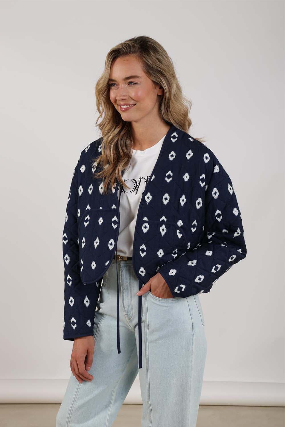 Vest Jolie van Nukus is een stijlvol dames vest met een casual uitstraling, ideaal voor elke gelegenheid. Dit colbert heeft een opvallend geblokt patroon en lange mouwen. De koordsluiting biedt comfort en gemak, terwijl het ontwerp toegankelijk en modieus blijft.