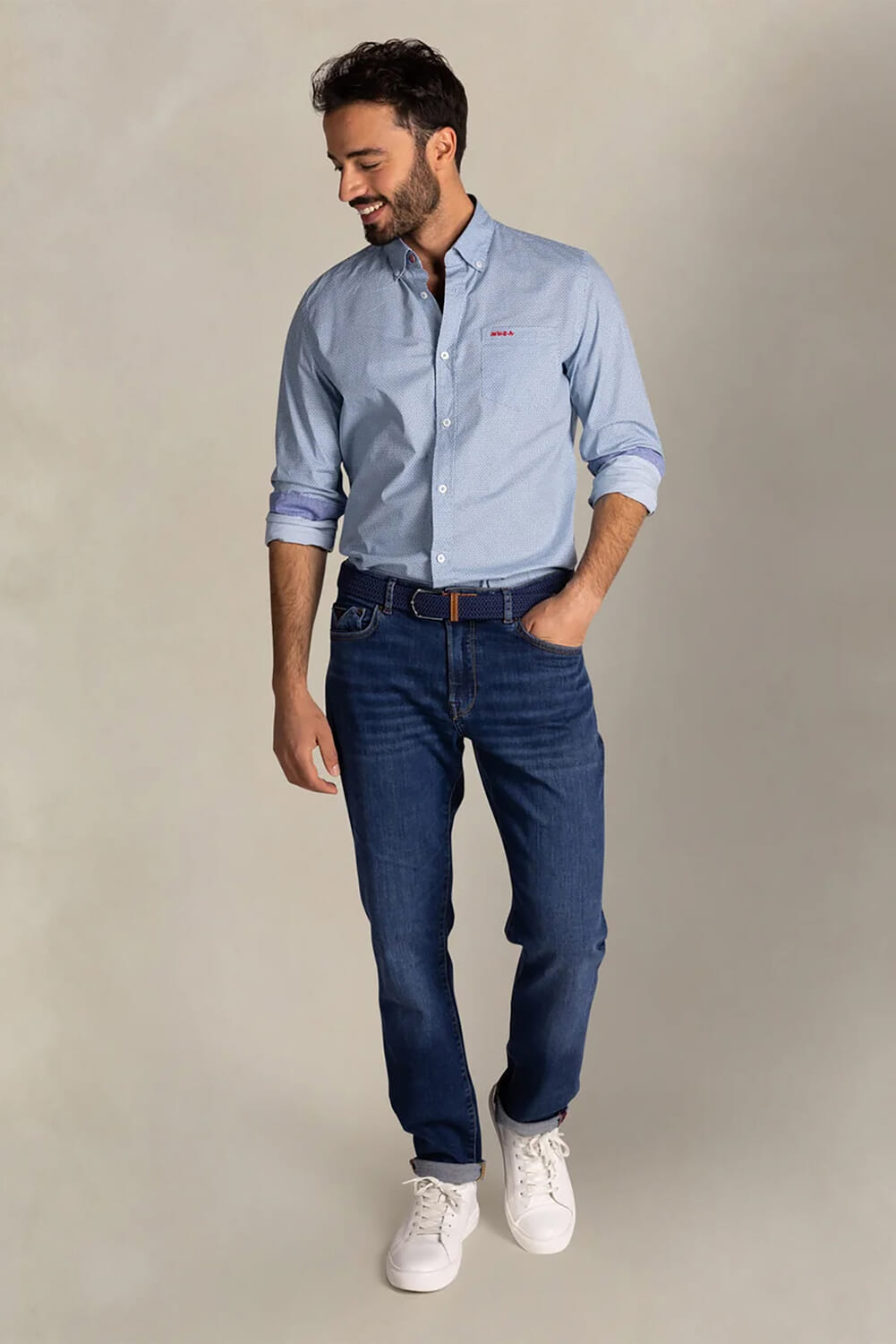 Dit overhemd van Nza is een stijlvol business kledingstuk. Het heeft een button down kraag, lange mouwen met manchetten en knopen, en een effen patroon. Het zakelijke karakter wordt versterkt door de zakken op de voorzijde en de nette afwerking.