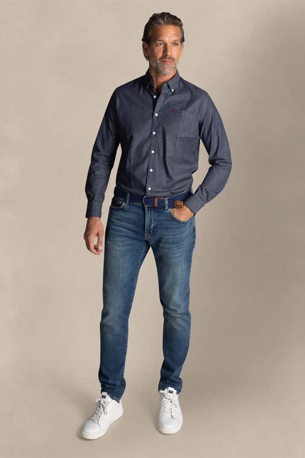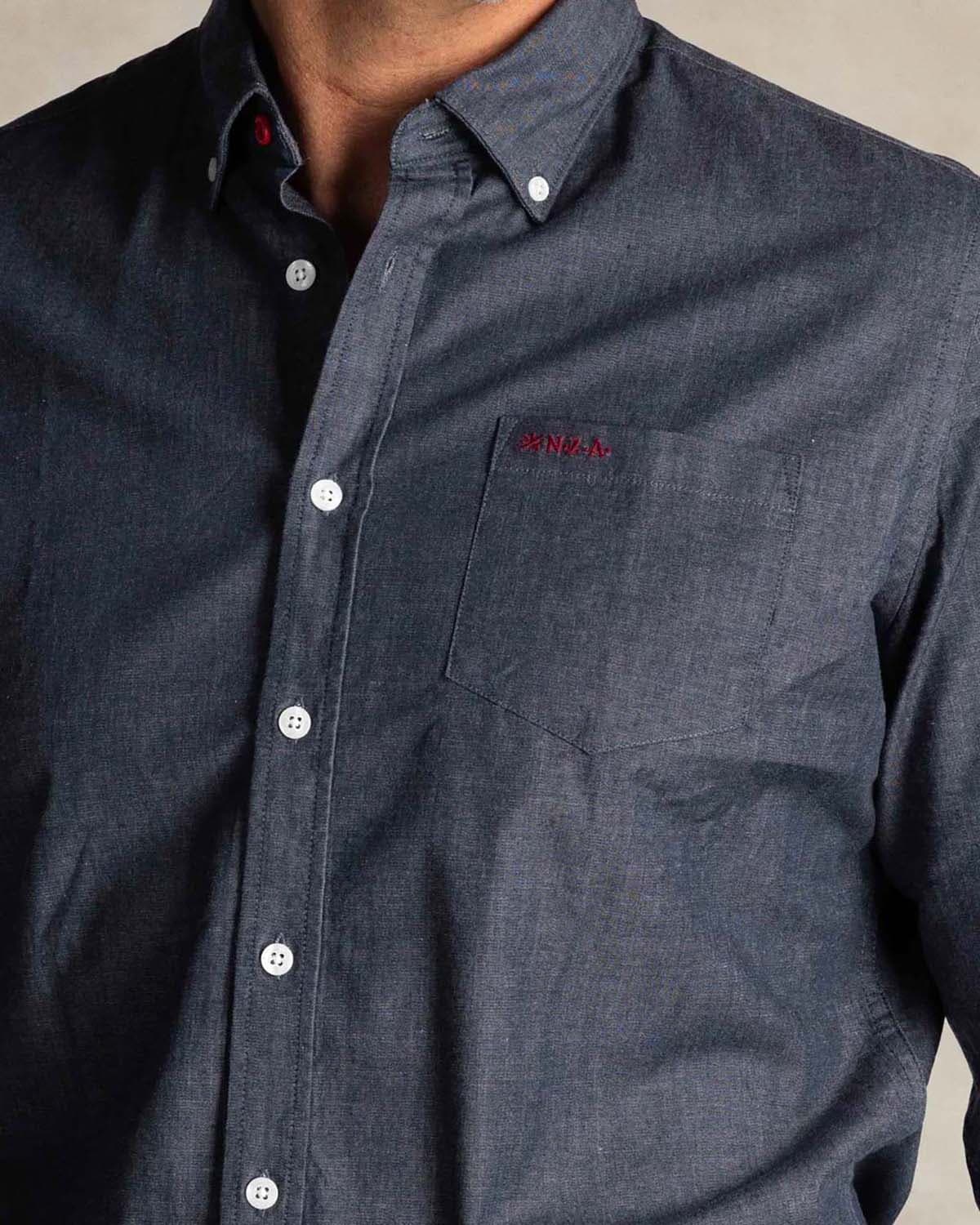 Het overhemd van Nza is een stijlvol heren overhemd met een button down kraag, lange mouwen en een nette knoopsluiting. De effen stof geeft het een zakelijke uitstraling, terwijl de zak op de voorzijde en manchetten met knopen praktische details toevoegen voor dagelijks gebruik.