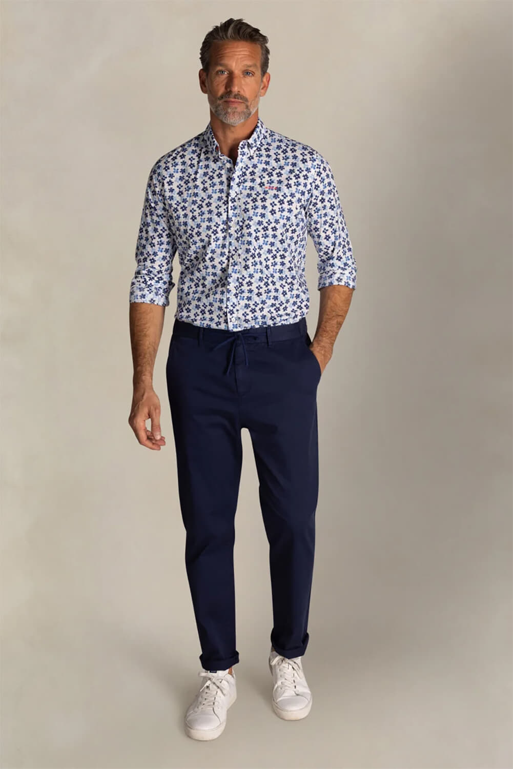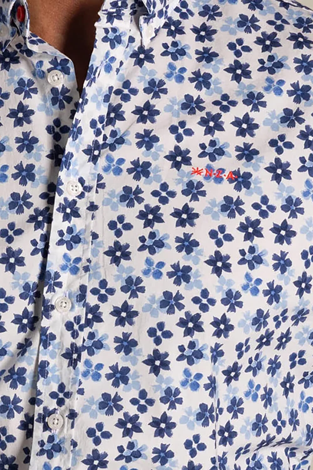 Het overhemd van Nza is een heren overhemd km met een casual stijl, een button down kraag en zakken op de voorzijde. Het patroon van bloemen geeft een vrolijke en modieuze uitstraling. Regular fit en lange mouwen maken het perfect voor elke gelegenheid.