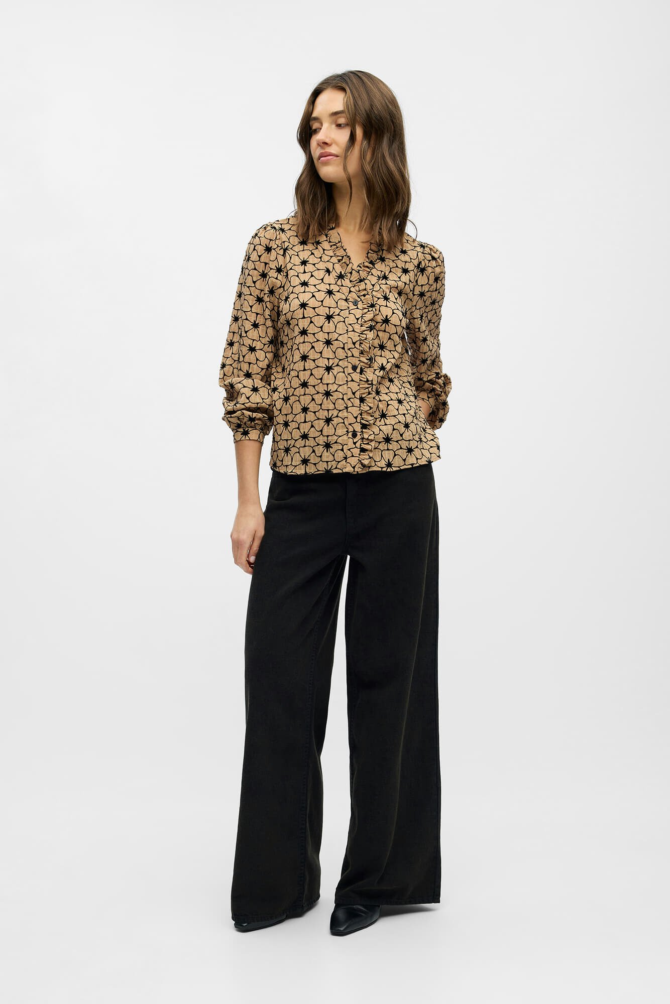 De Blouse Dea Ruche van Object is een stijlvolle dames blouse met een casual uitstraling. Met een opstaande kraag en lange mouwen met manchetten, biedt deze blouse een losse, comfortabele pasvorm. De unieke ruches en bloemenpatroon maken het een opvallend kledingstuk.