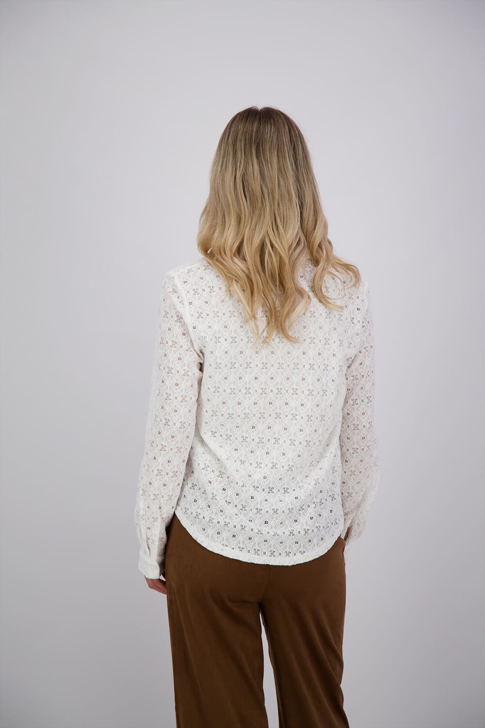 Blouse Laila van Object is een stijlvolle dames blouse met een vrouwelijke uitstraling. Deze casual blouse heeft een button down kraag, lange mouwen met manchetten met knopen en een uniek gaatjespatroon. De regular pasvorm maakt het perfect voor alledaags comfort.