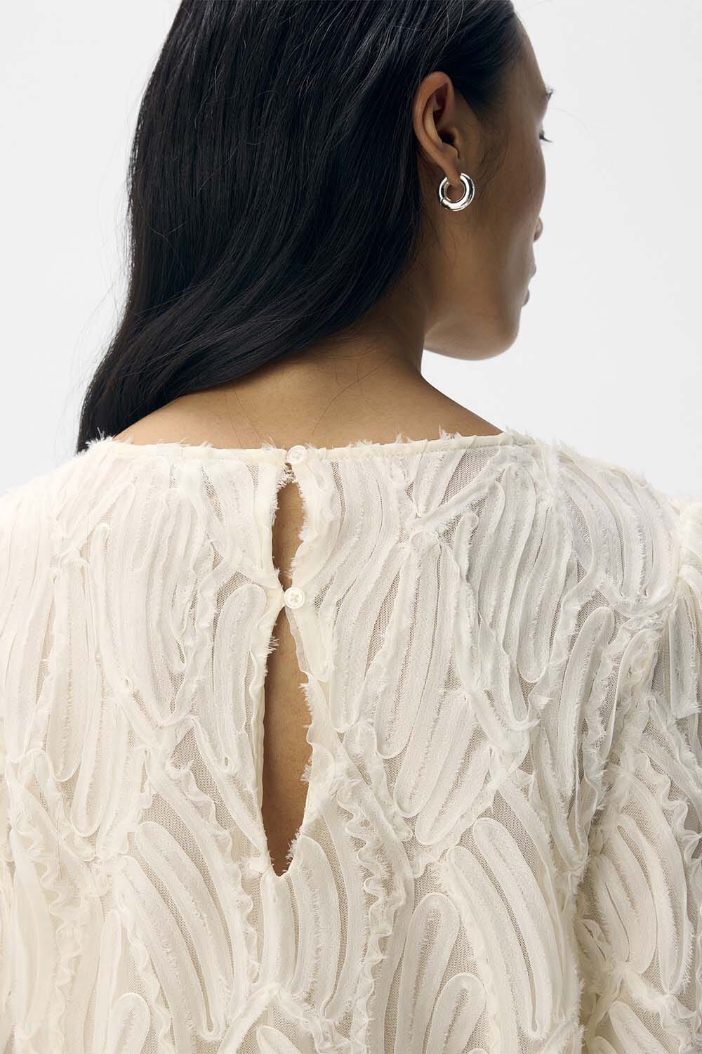 De Blouse Lucie van Object is een stijlvolle dames blouse met een casual uitstraling. Het heeft een ronde hals, lange mouwen met elastische manchetten en een haak-en-oog sluiting. Het unieke gaatjespatroon en de regular fit maken het perfect voor elke gelegenheid.