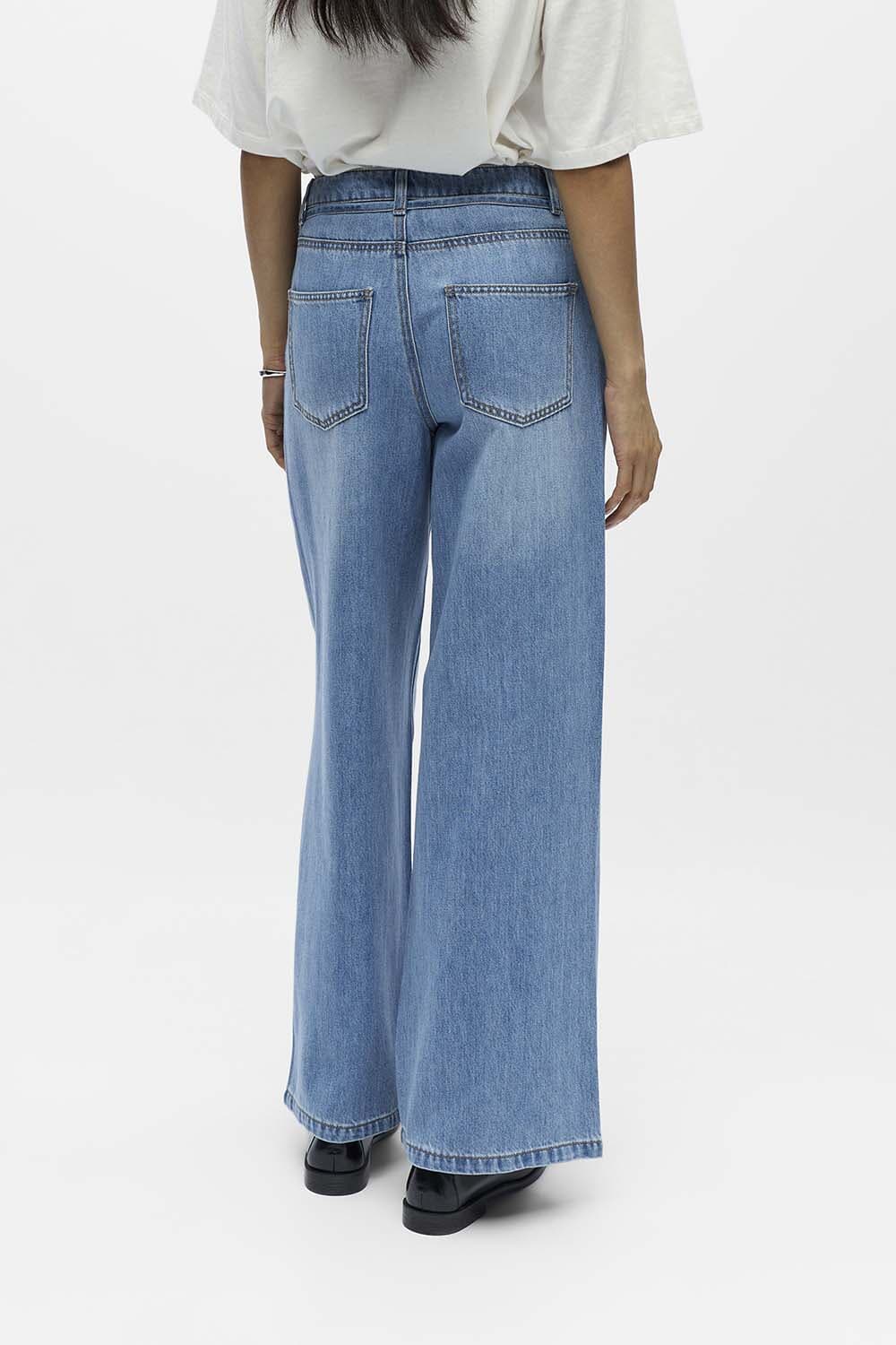 Jeans Rosie Wide van Object is een casual dames jeans met een hoge en normale taille. Voorzien van voor- en achterzakken en een sluiting met koord en rits, heeft deze jeans een wijde pijp en een relaxte pasvorm. Ideaal voor elke garderobe.