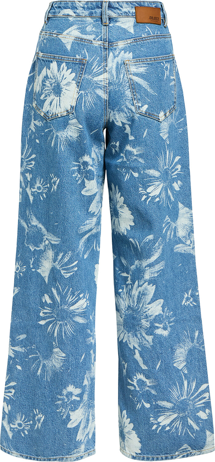 Jeans Sava Emel van Object combineert casual stijl met een hoge taille en een bloemenpatroon. Gemaakt van denim, biedt deze dames jeans een losse pasvorm met wijde pijpen en zowel voor- als achterzakken. Perfect voor een modieuze en comfortabele uitstraling.