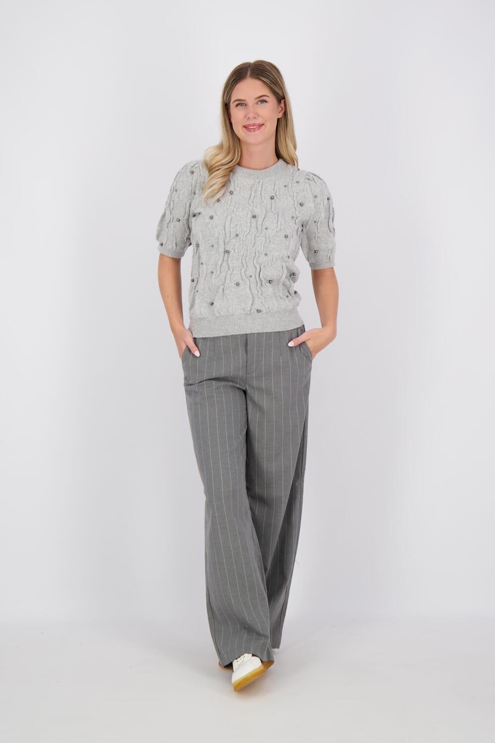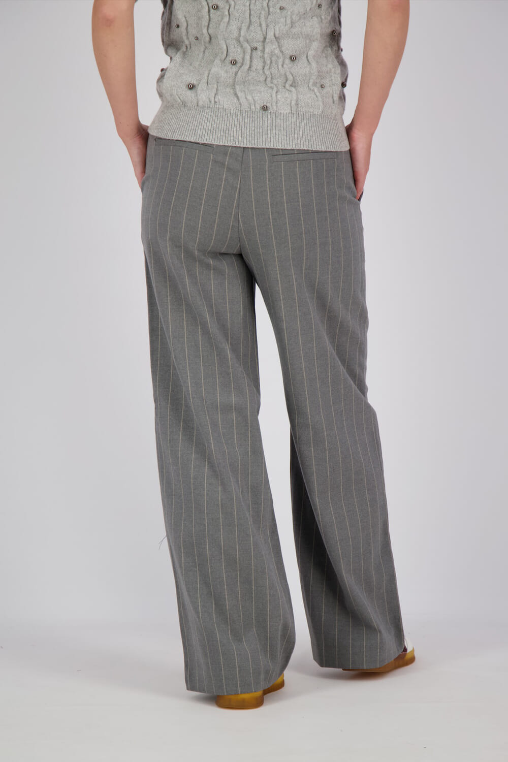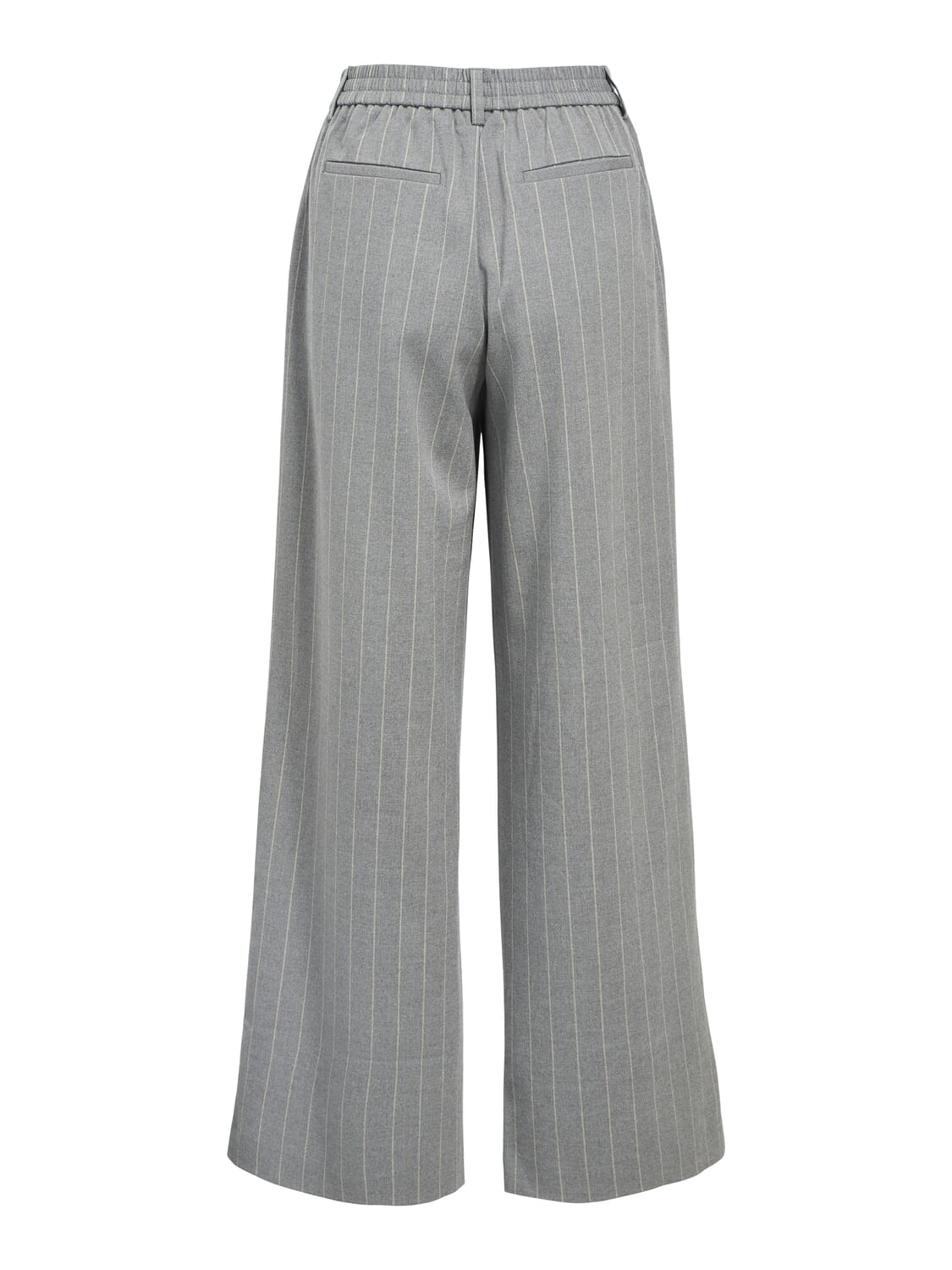 Pantalon Lisa van Object is een dames pantalon met een verfijnde stijl en een normaal taillehoogte. De broek heeft een losse pasvorm en wijde pijpen, perfect voor een casual dag. De grijze streep zorgt voor een tijdloze uitstraling en veelzijdigheid.