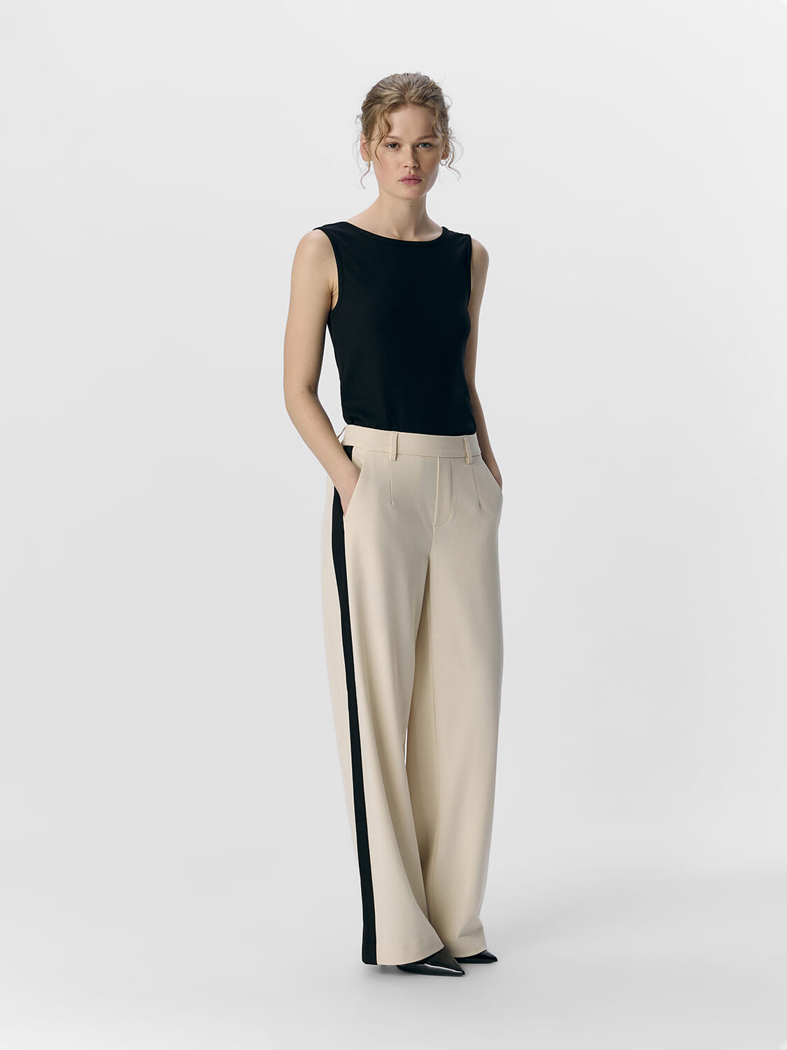 Pantalon Lisa van Object is een stijlvolle dames pantalon met een losse pasvorm, ontworpen voor comfort en stijl. De contrasterende zijstrepen geven een modieuze twist aan deze veelzijdige legging. Ideaal voor elke gelegenheid, biedt deze pantalon een moderne en toegankelijke look.