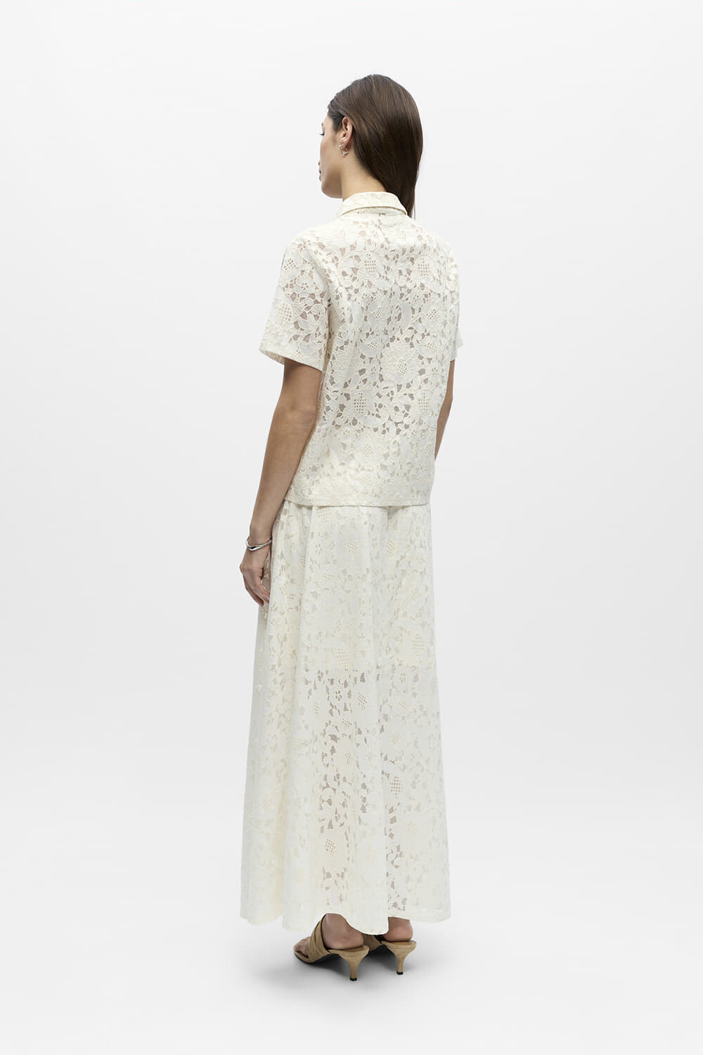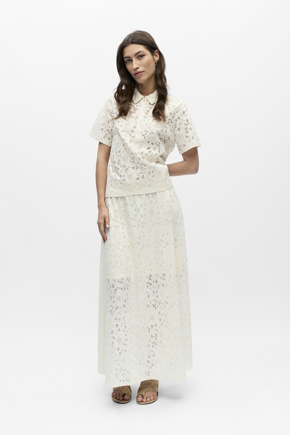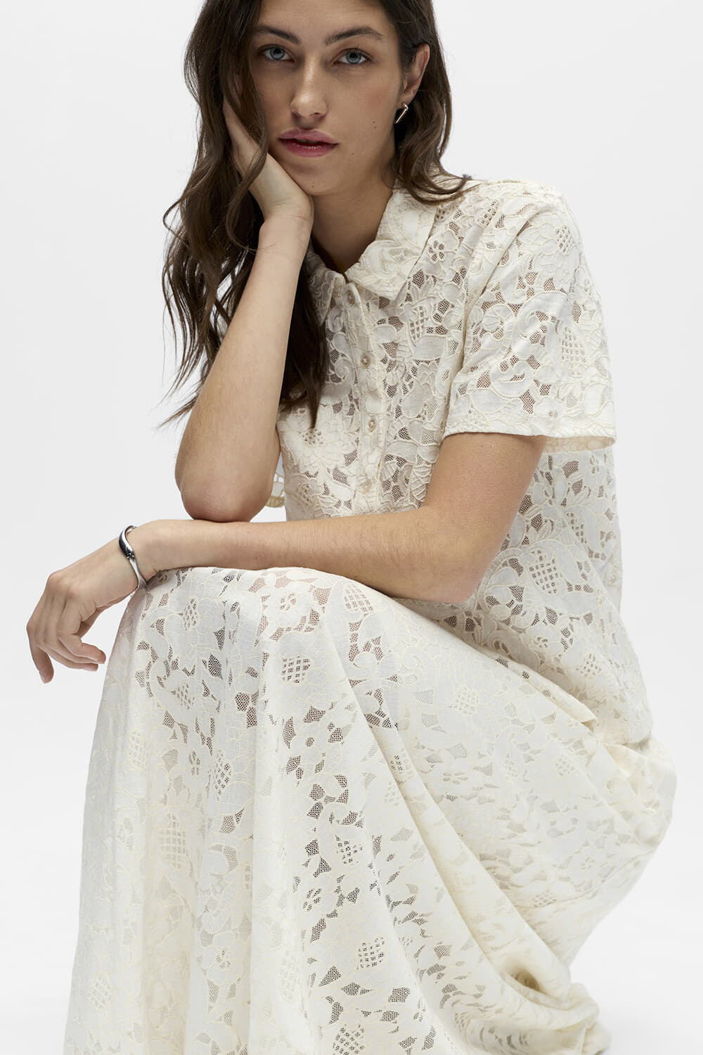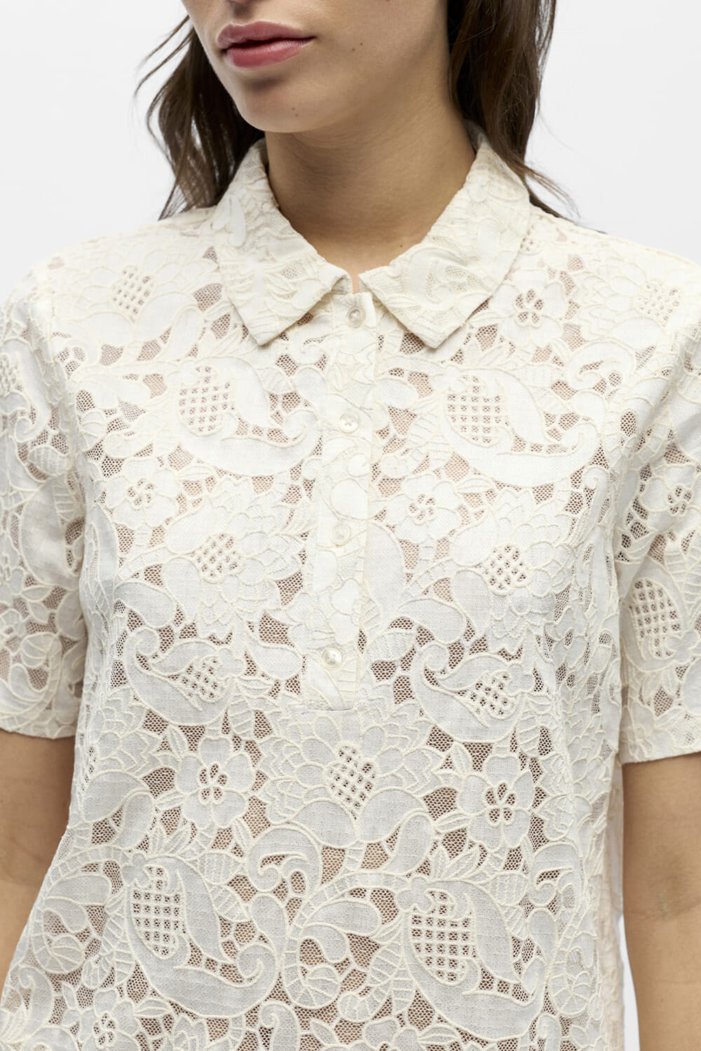 Polo Bianca van Object is een elegante polo met een unieke kanten all-over patroon, voorzien van een button down kraag en lange mouwen met manchetten. De losse pasvorm maakt het ideaal voor nette gelegenheden, terwijl de knoopsluiting een verfijnde touch toevoegt.