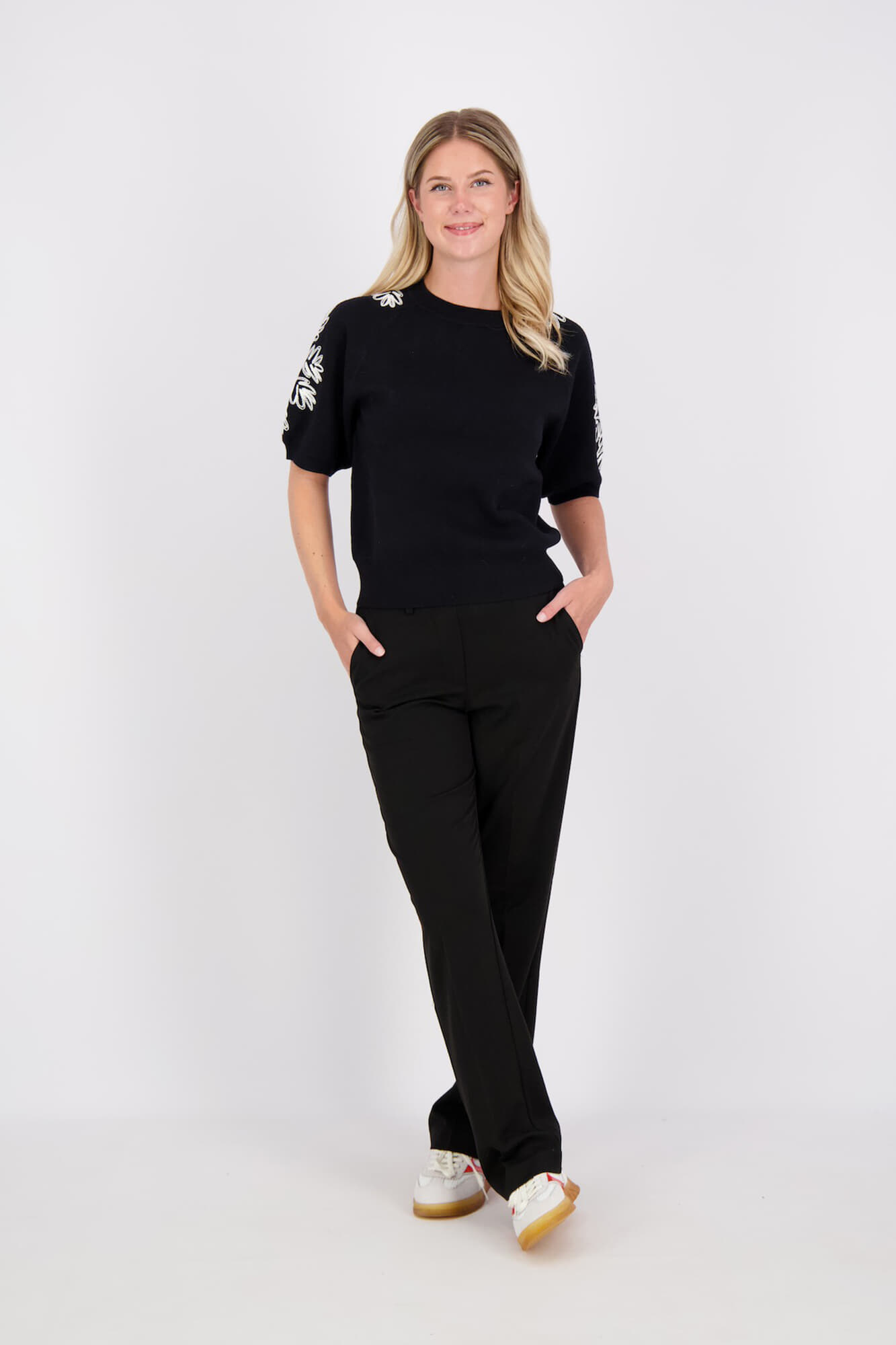 De Pullover Rashia van Object is een stijlvolle dames trui met een ronde hals en korte mouwen. Het bloemmotief op de mouwen geeft een unieke en modieuze uitstraling. De relaxte pasvorm zorgt voor comfort en maakt deze gebreide trui ideaal voor elke gelegenheid.