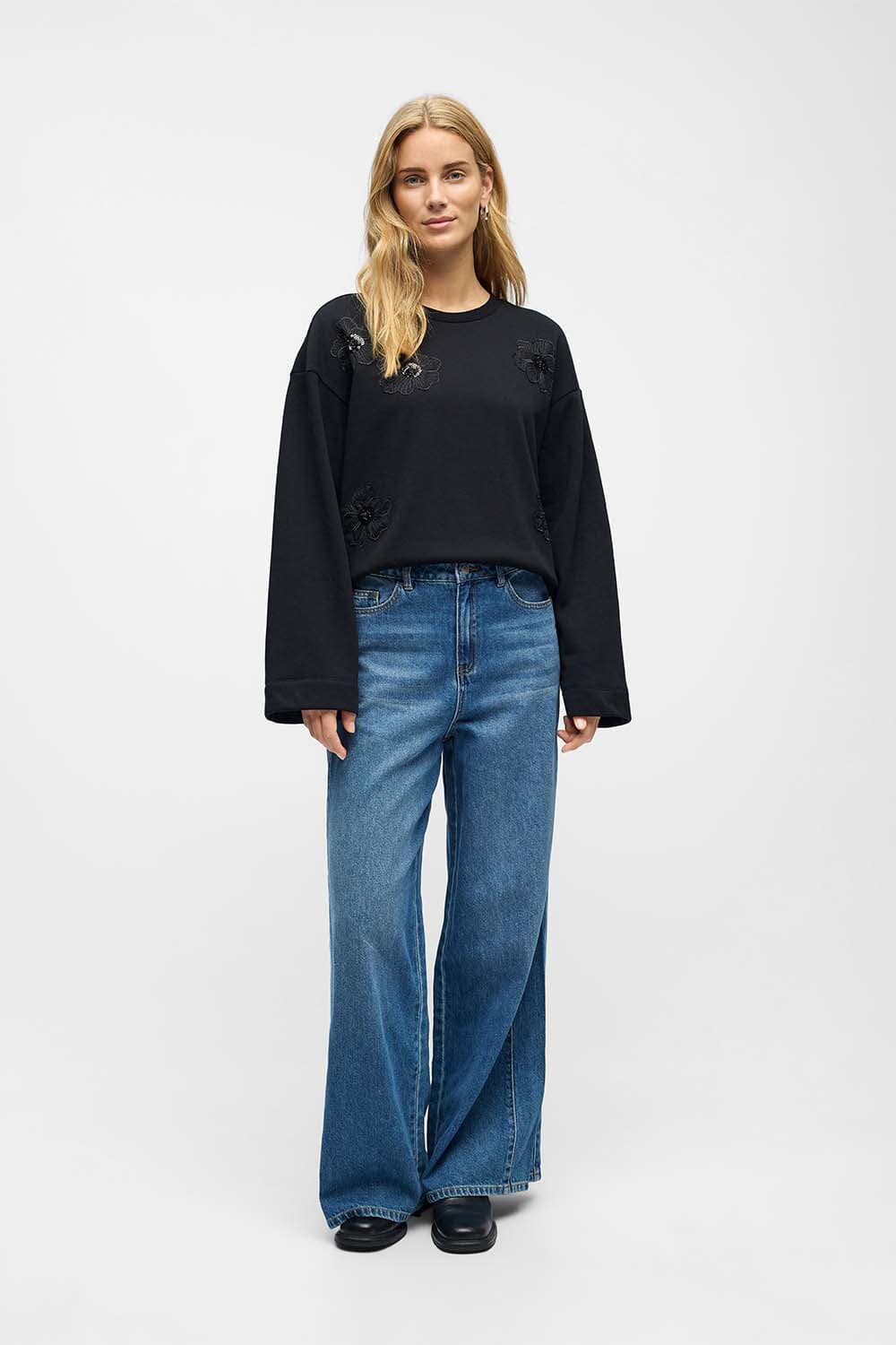 Sweater Carly van Object is een stijlvolle dames sweater met een casual stijl. De sweater heeft brede manchetten, een ronde halslijn en een cropped fit met lange mouwen. Het effen patroon zorgt voor een trendy uitstraling. Perfect voor elke gelegenheid.