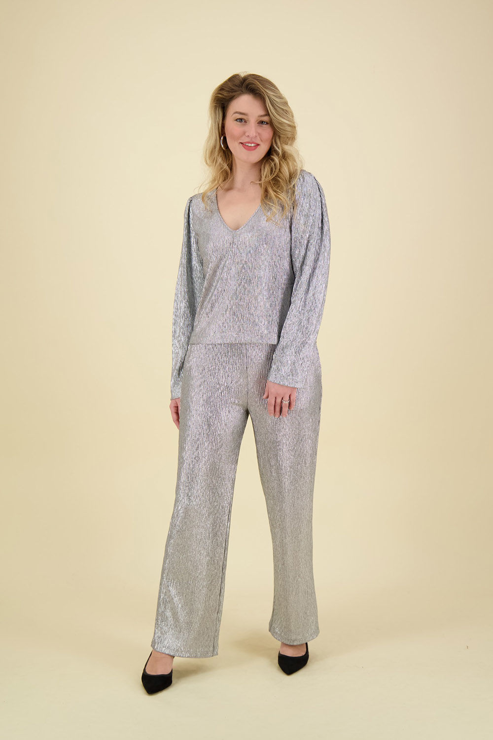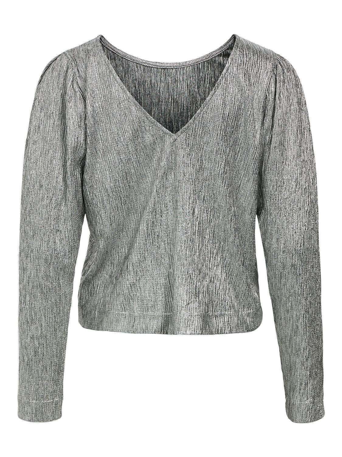 De Object Top Louise Grijs is een glanzende getextureerde top, perfect voor een stijlvolle en chique look. Dit kledingstuk maakt deel uit van een set en heeft een ronde hals en een diepe V-vormige uitsnede aan de achterkant, wat een elegante en gedurfde uitstraling geeft. De lange mouwen en regular fit zorgen voor een comfortabele pasvorm, ideaal voor verschillende gelegenheden.