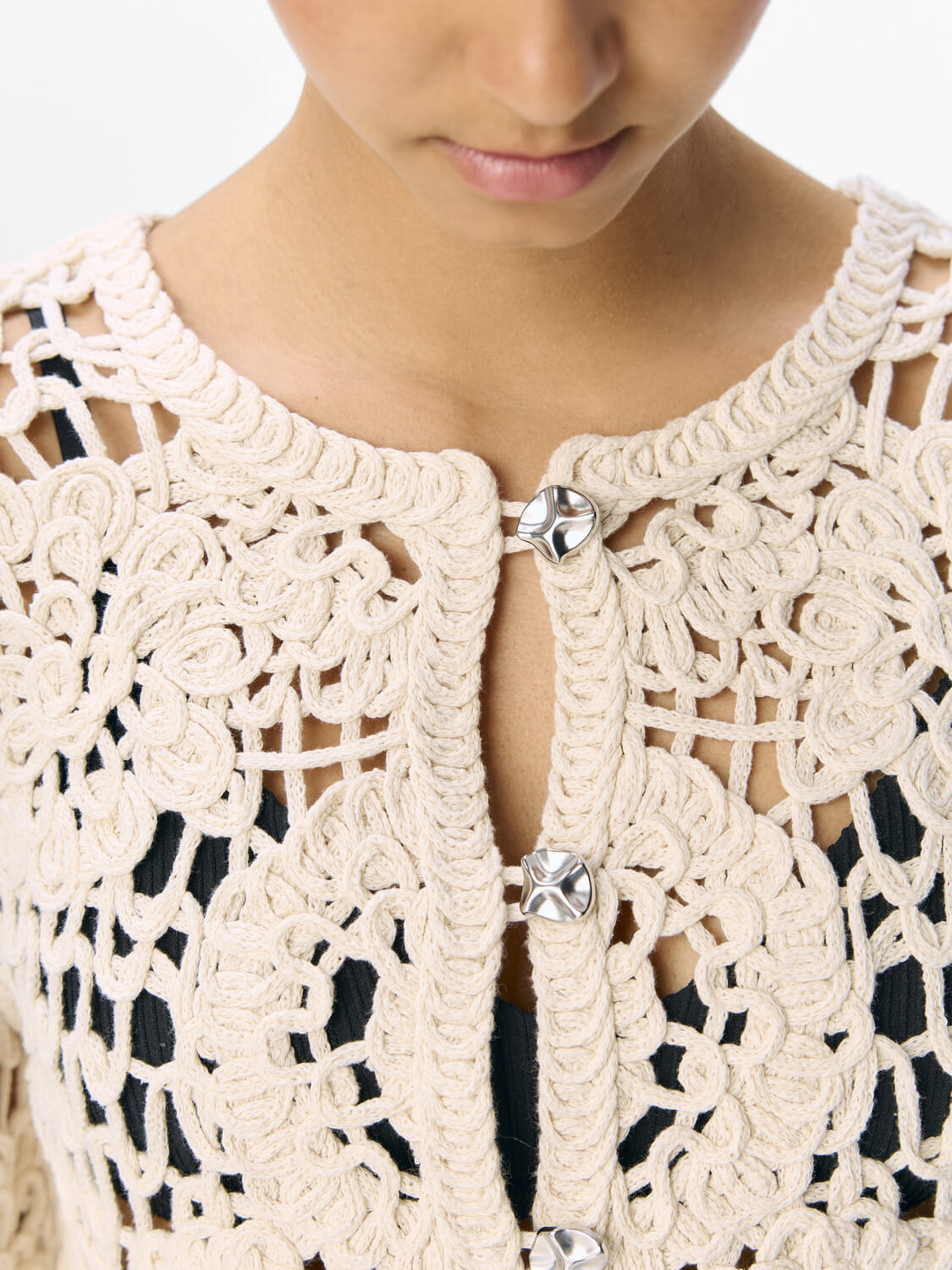 Het Vest Lizza van Object is een stijlvol dames vest met een bohemian flair. De ronde halslijn en knopen geven het een elegante touch, terwijl de lange mouwen en het gaatjespatroon zorgen voor een unieke uitstraling. Ideaal voor trendy gelegenheden.