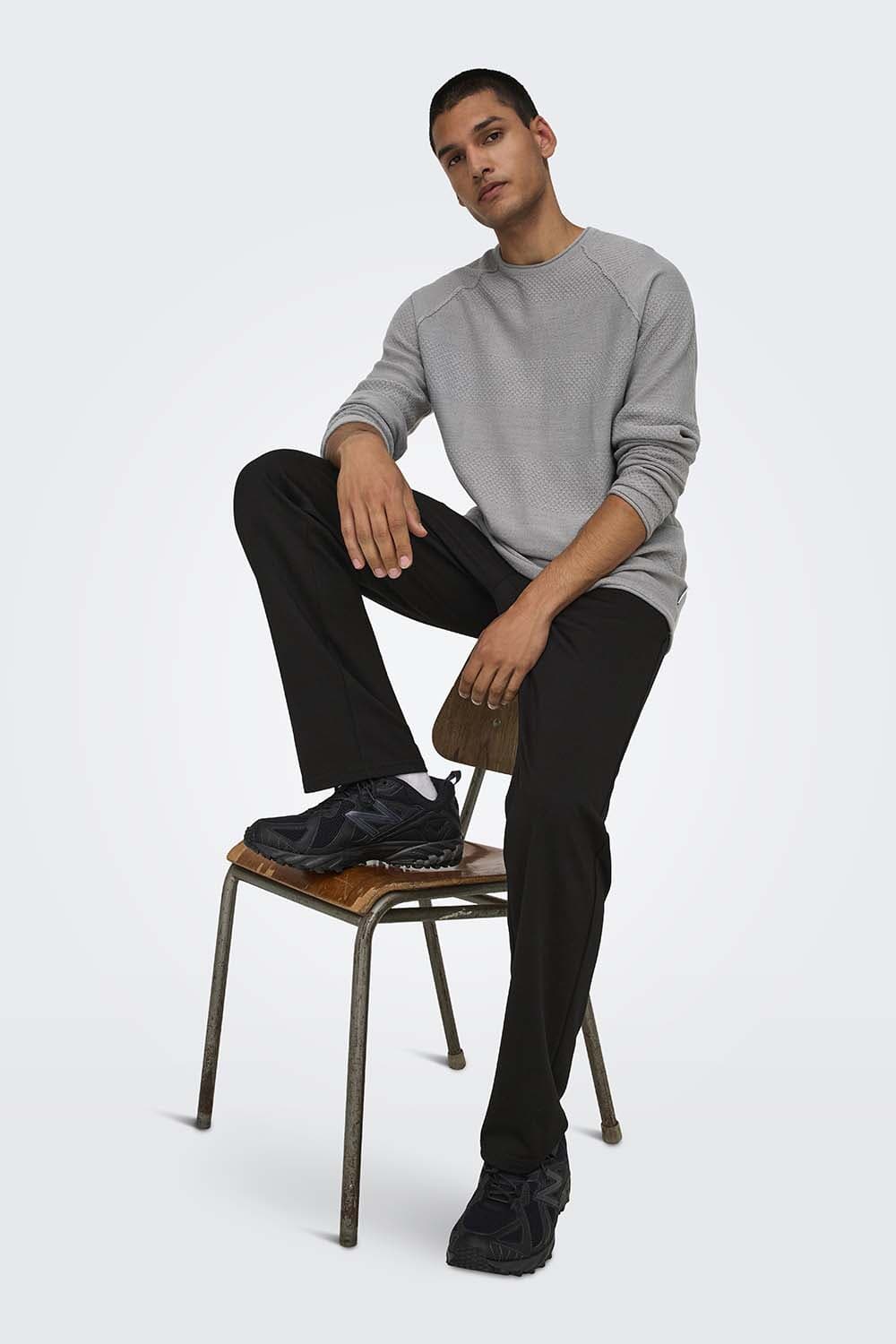 Broek van Only & Sons, lange broek met casual, minimalistische uitstraling. Regular pasvorm met rechte pijp en normale taille. Effen ontwerp met steekzakken voor en achter, en een rits- en aanschuifsluiting. Draagt comfortabel en oogt netjes. Combineer met T-shirt of trui en sneakers.