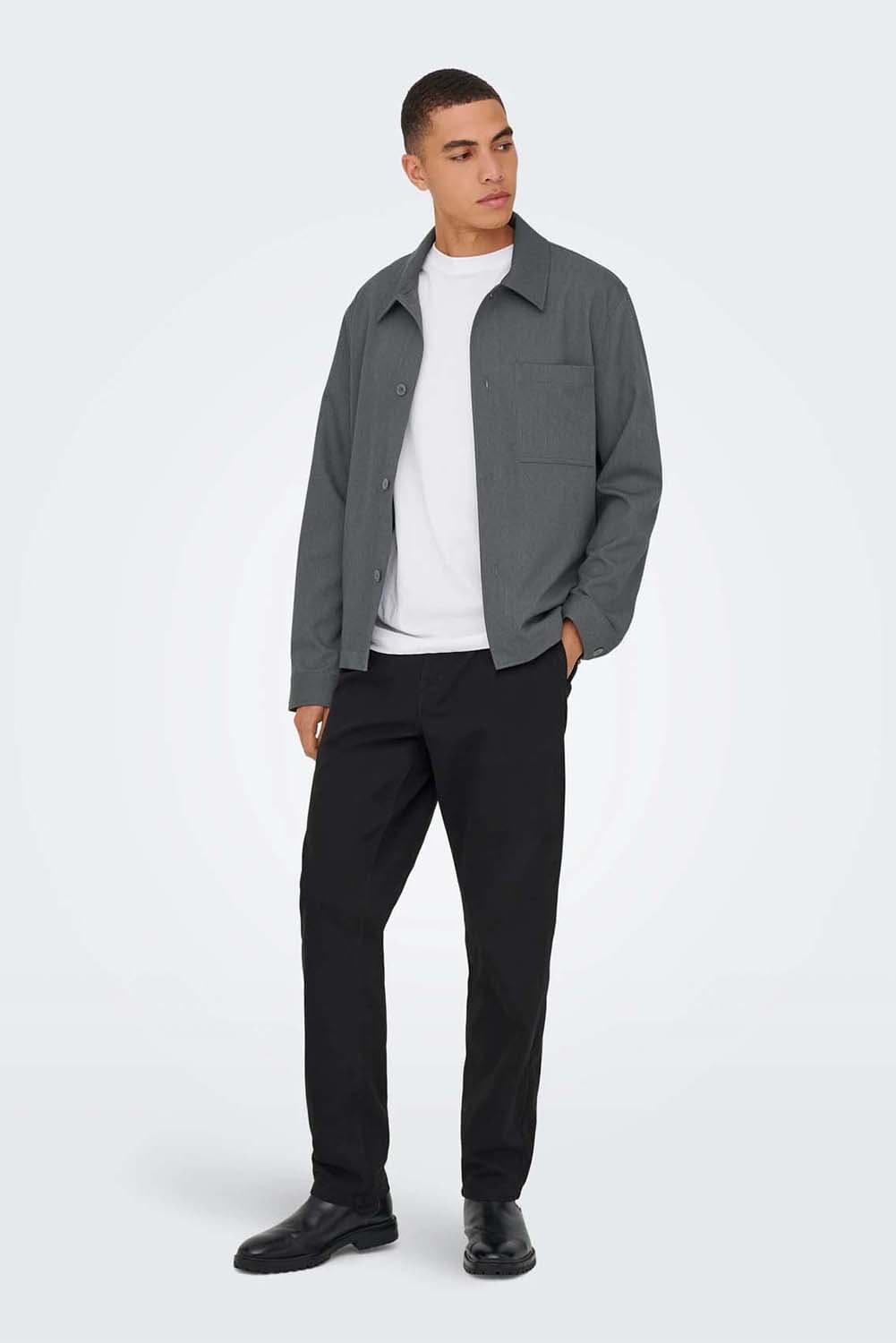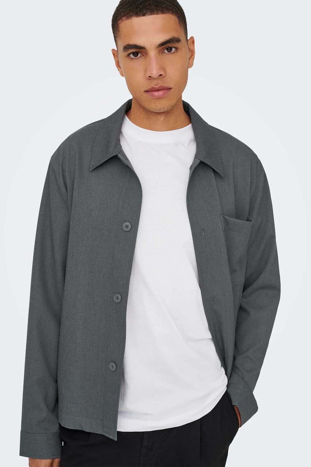 De ONSMIRO TAILORED van Only & Sons is een stijlvol overshirt met een minimalistisch ontwerp. Het heeft een button down kraag, zakken op de voorzijde, en lange mouwen met knoopmanchetten. Perfect voor casual gelegenheden als tussenjas.