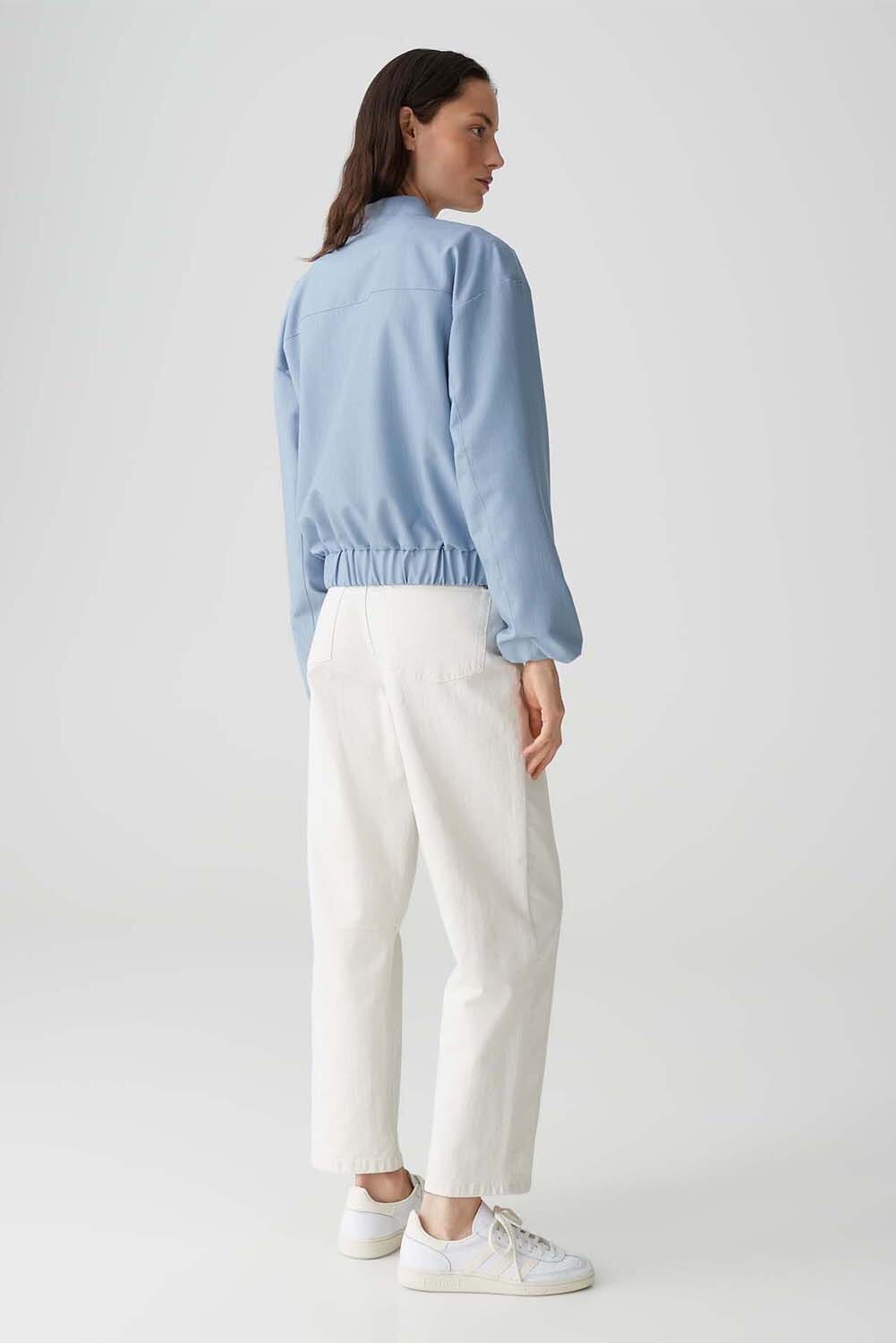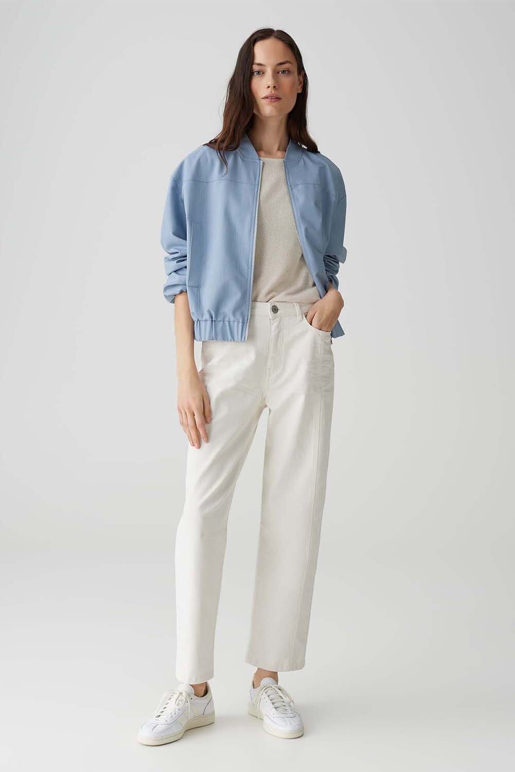 De Blazer Jelen van Opus is een stijlvolle tussenjas met een opstaande kraag, lange mouwen en ritssluiting. Perfect voor een casual look, biedt deze blazer comfort en elegantie. Ideaal voor elke garderobe, deze blazer combineert veelzijdigheid met een modieuze uitstraling.