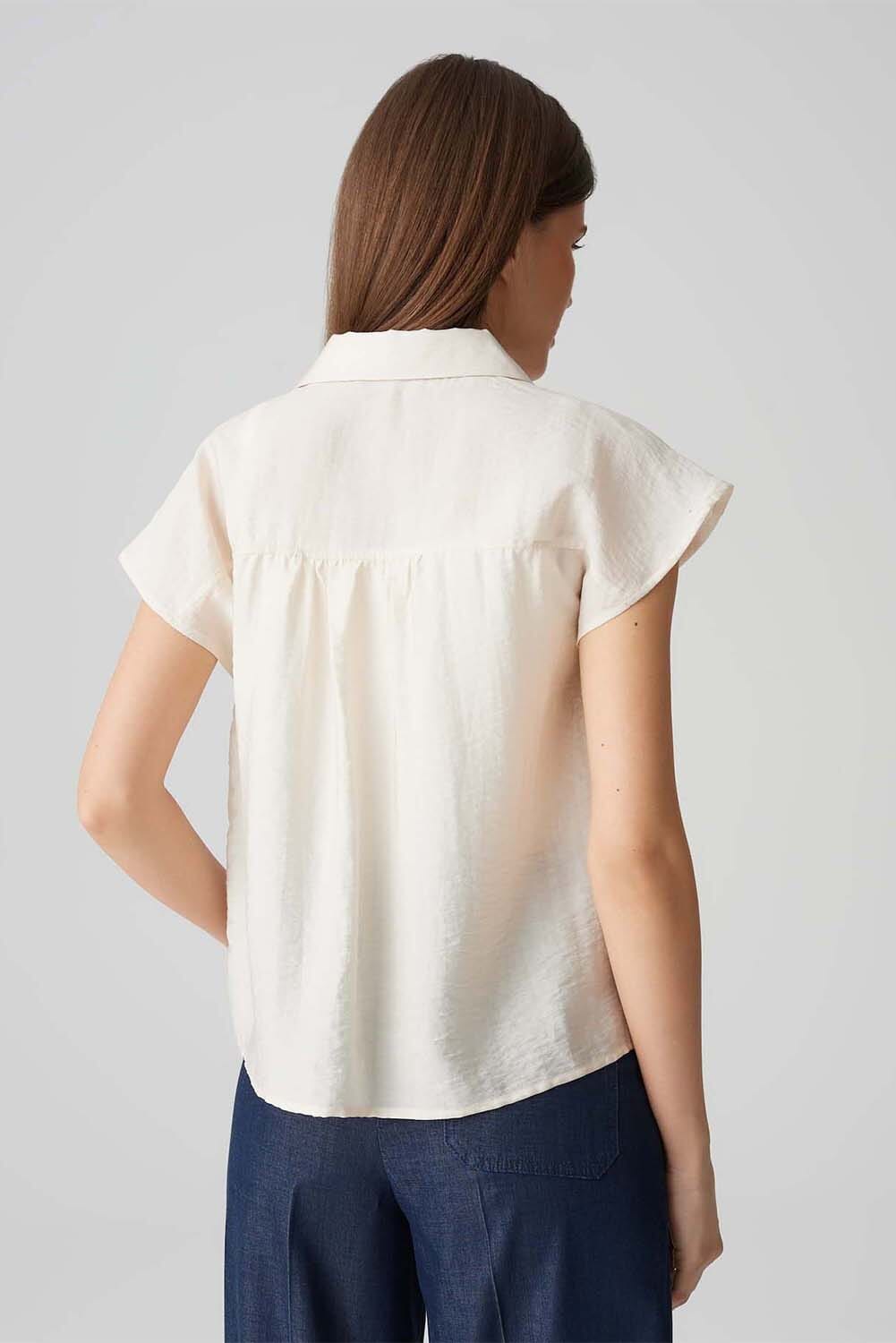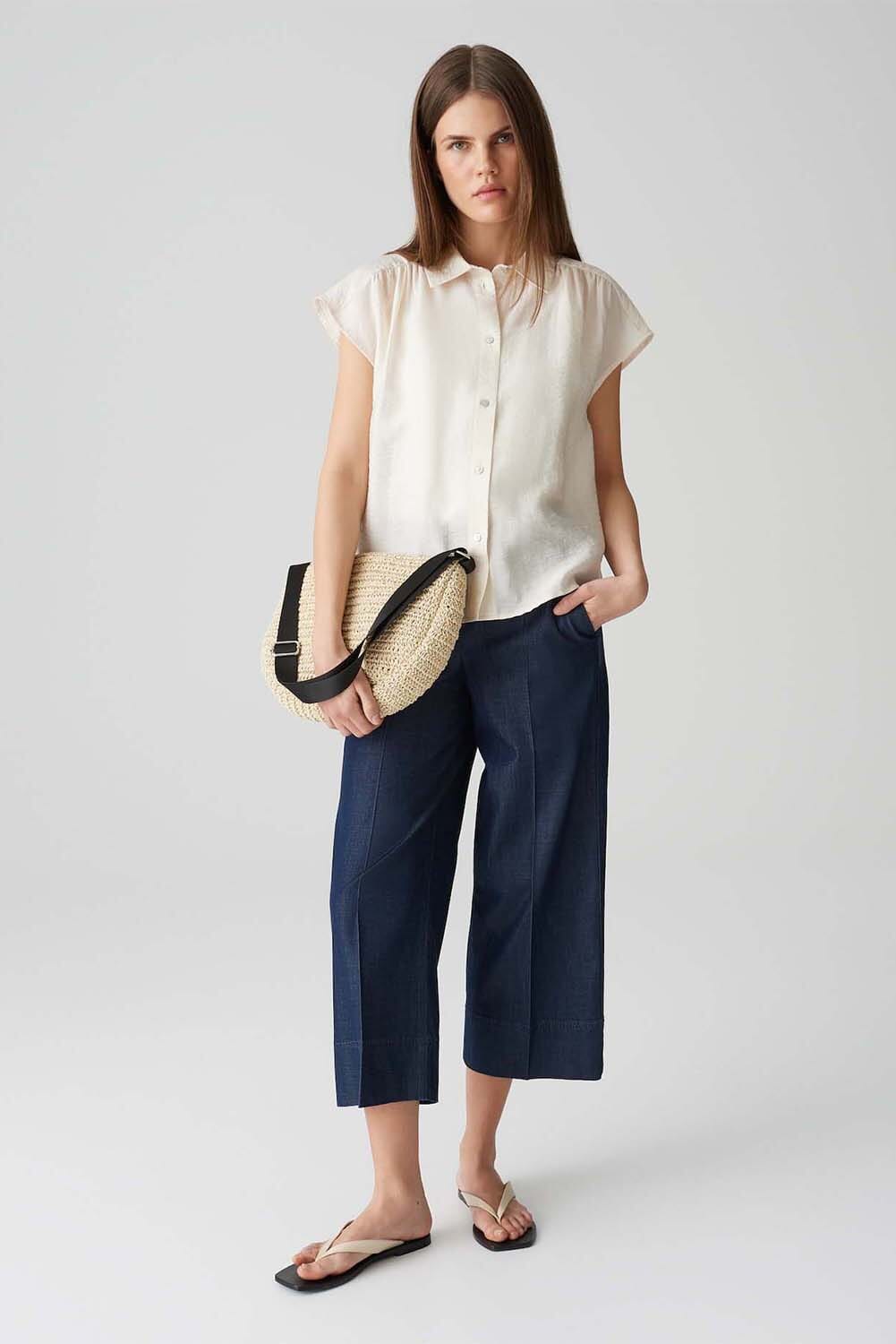De blouse van Opus biedt een casual stijl met een button down kraag en korte mouwen. De effen kleur en losse pasvorm maken deze blouse perfect voor een ontspannen gelegenheid. De knoopsluiting en manchetloze afwerking zorgen voor een elegante uitstraling.