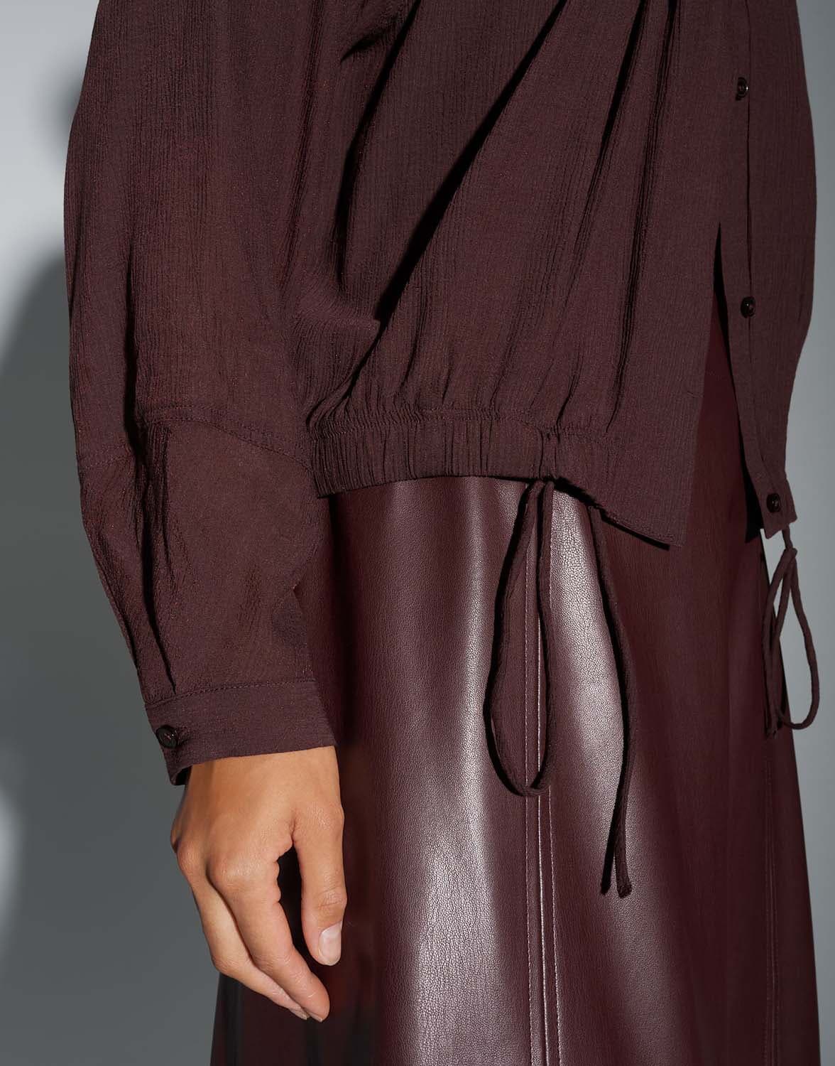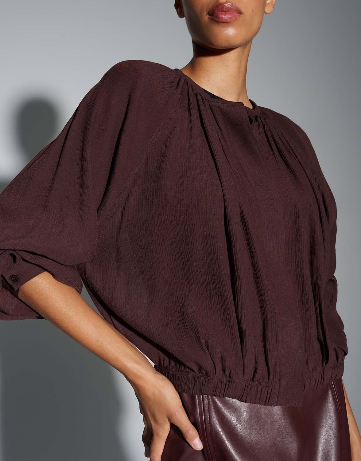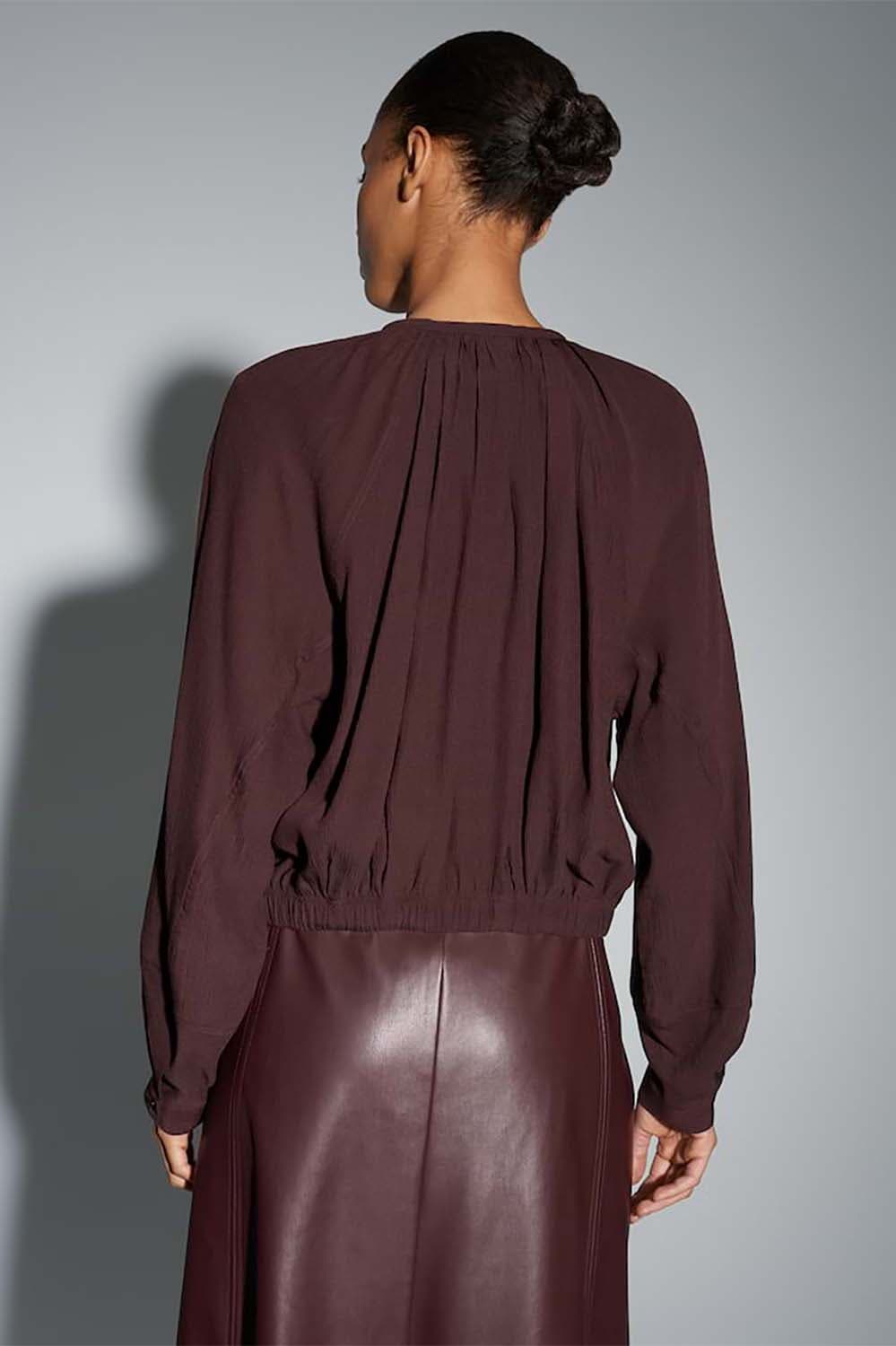 Een vleugje transparantie en de fijne crêpestructuur geven de FALUNA blouse in tuniekmodel een feestelijke uitstraling. Het vrouwelijke strikdetail aan de zoom creëert een licht O-vormig silhouet, perfect voor onvergetelijke momenten.