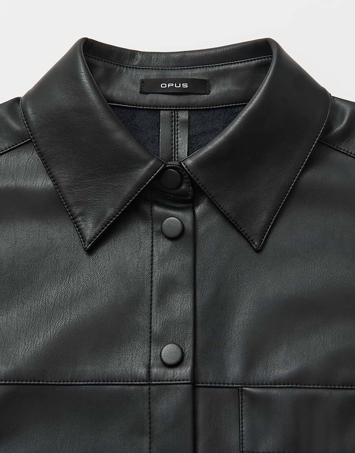 Blouse Fedgy van Opus is een stijlvol overshirt met een minimalistisch ontwerp. Het heeft een capuchonkraag, lange mouwen met knoopmanchetten, en een praktische druksluiting. De boxy fit en effen patroon maken het perfect voor casual gelegenheden, terwijl het tegelijk verfijnd en toegankelijk blijft.