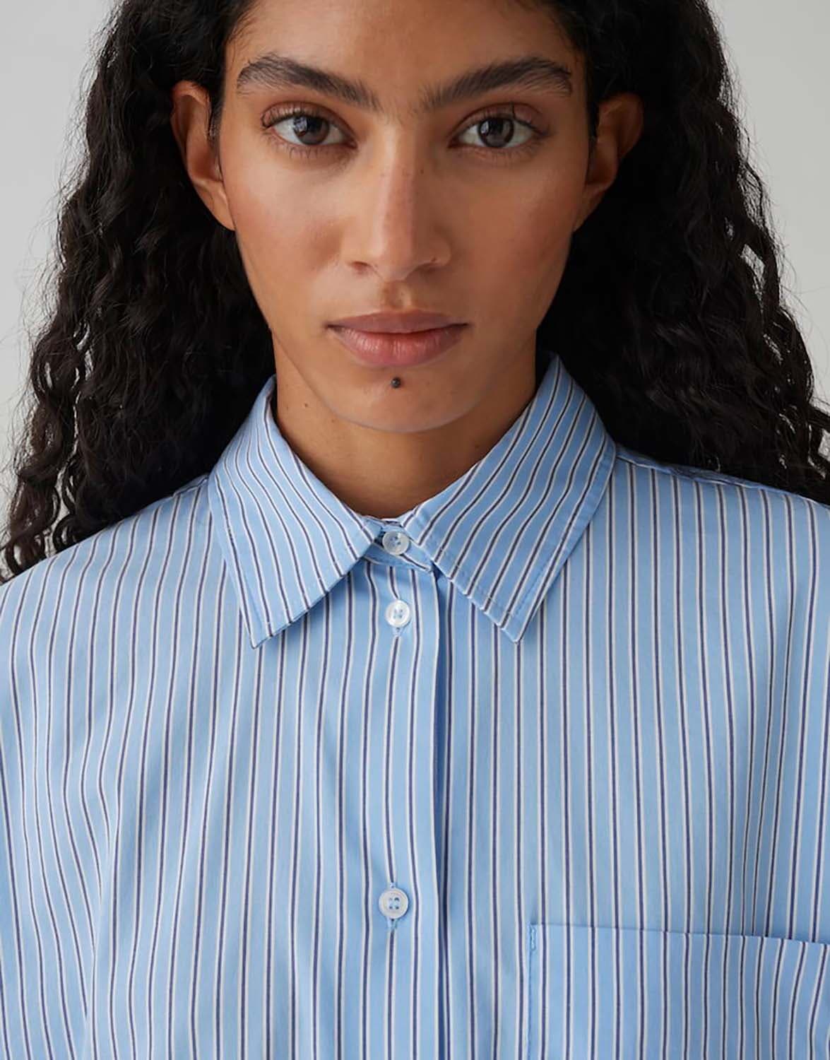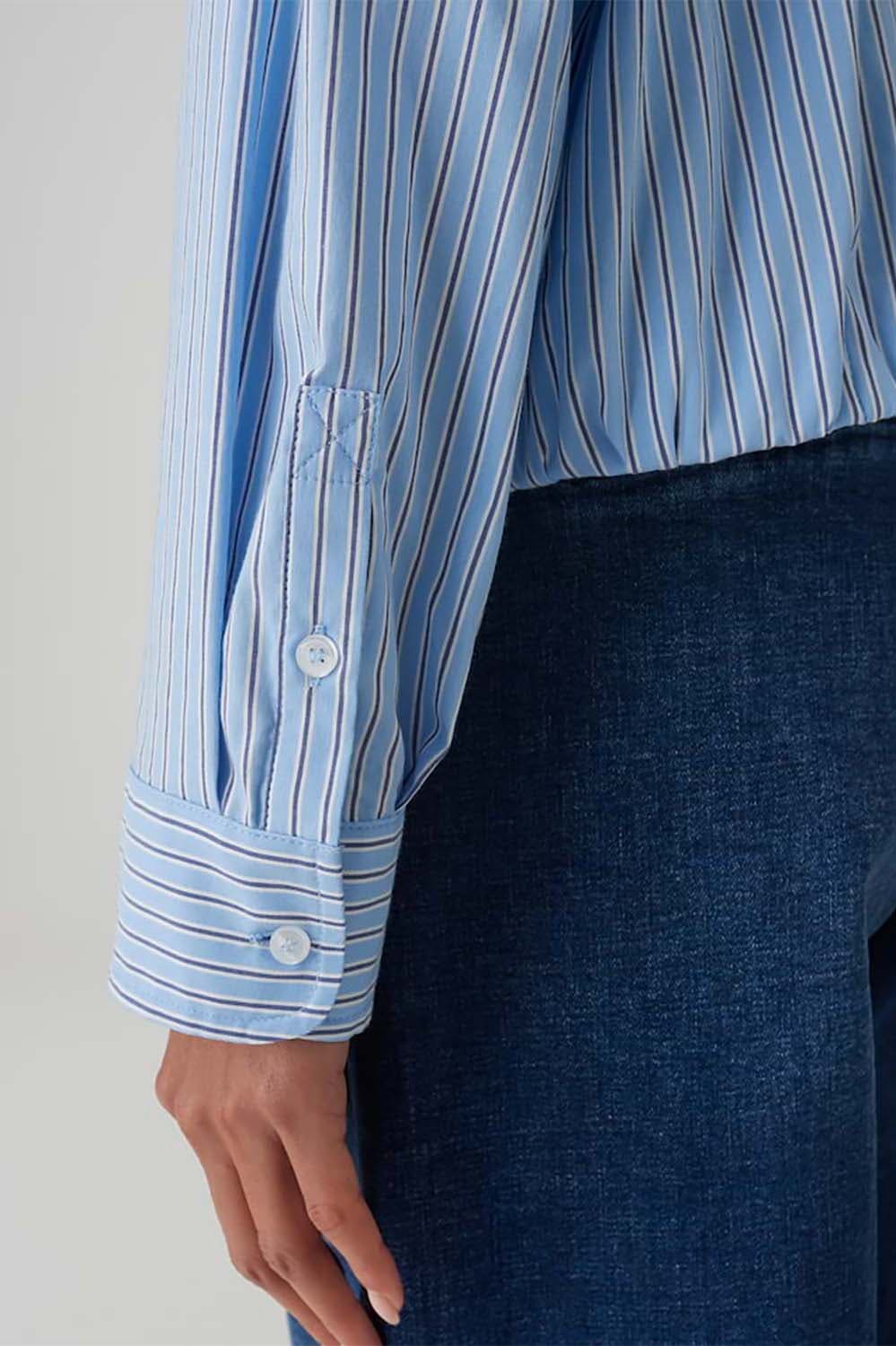 De Blouse Fresa van Opus is een stijlvolle casual blouse met een button-down kraag, lange mouwen en een losse pasvorm. Deze gestreepte blouse heeft zakken aan de voorzijde en knopen als sluiting. Ideaal voor een ontspannen look met zijn normale taille en manchetten met knopen.