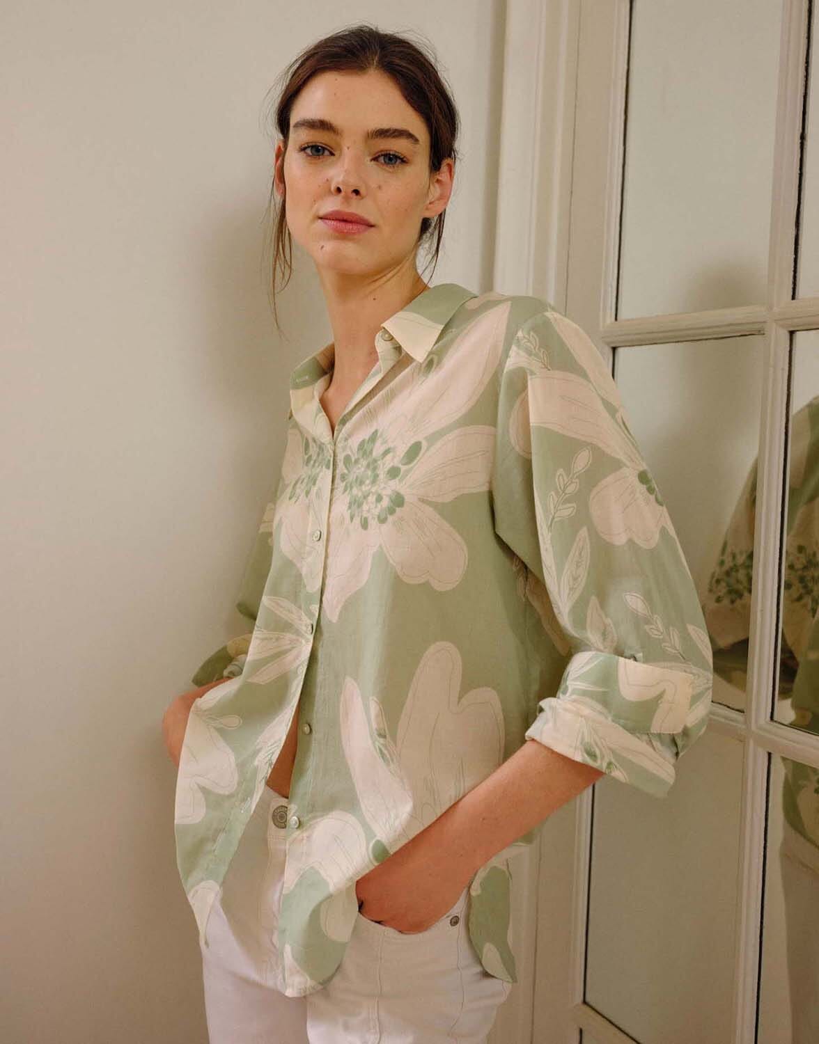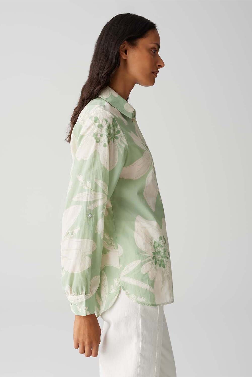 De blouse van Opus is een casual blouse met een losse pasvorm en een speels bloemenpatroon. De lange mouwen eindigen in manchetten met knopen en de blouse sluit met knopen en heeft een klassieke overhemdkraag. Ideaal voor een stijlvolle, ontspannen look.
