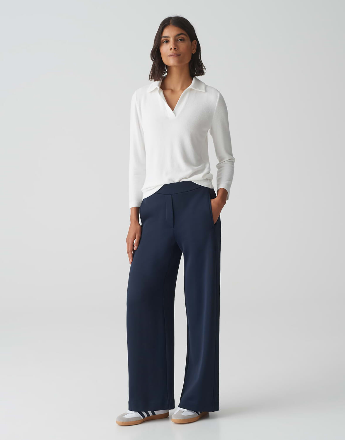 Broek Maikito Palazzo van Opus is een stijlvolle lange broek met een casual uitstraling en wijde pijpen. De normale taille en het effen patroon maken deze broek veelzijdig en comfortabel voor elke gelegenheid. Ideaal voor een moderne, modieuze look.