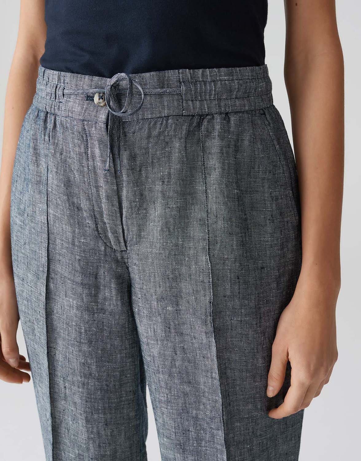 De broek van Opus biedt casual stijl met een elastische taille en koordsluiting. Deze cropped dames lange broek is ontworpen voor comfort en veelzijdigheid. Het combineert moeiteloos een moderne uitstraling met praktisch gebruik, ideaal voor diverse gelegenheden en gemakkelijke, stijlvolle outfits.