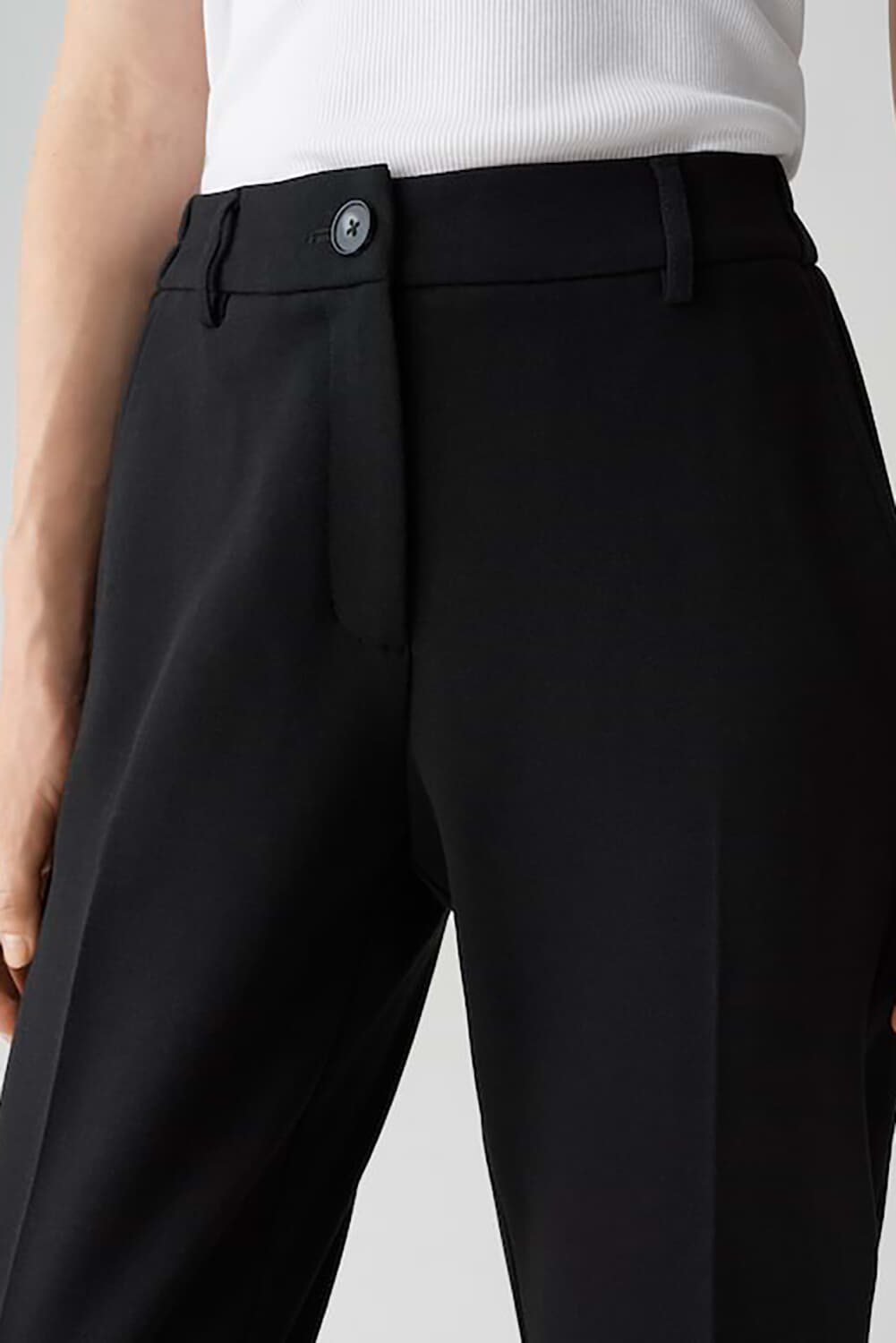 Broek Melina cozy van Opus is een elegante lange broek met een normale taille en regular fit. Uitgerust met een knoop- en ritssluiting, zakken op de achterzijde, en een effen patroon, is deze pantalon ideaal voor een zakelijke stijl en veelzijdig in gebruik.
