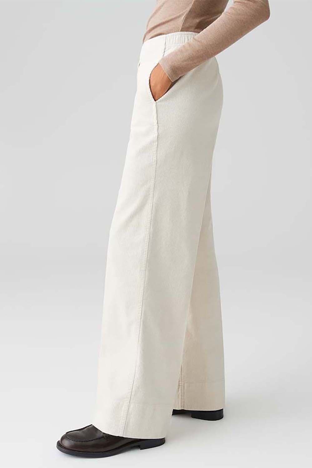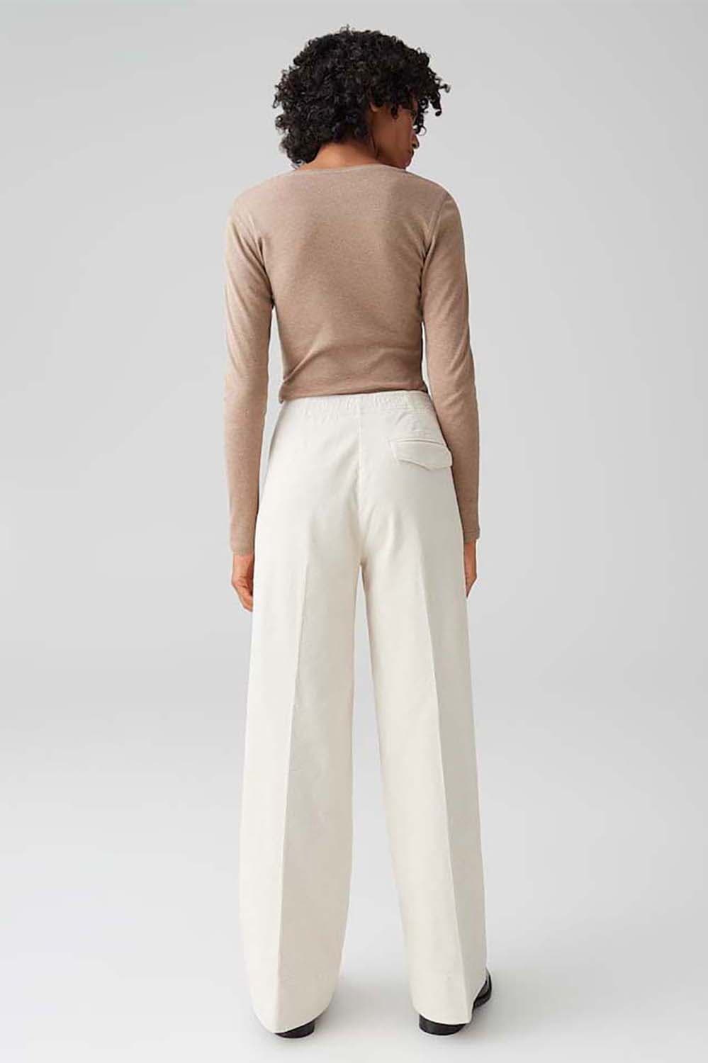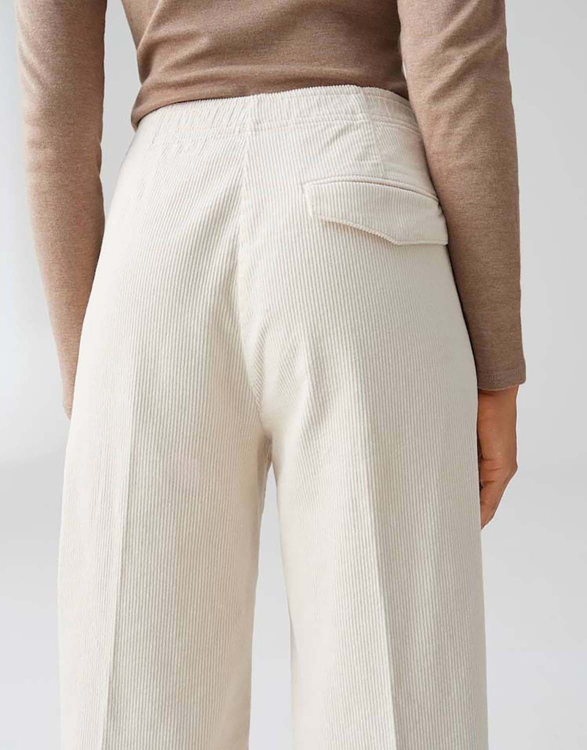 De Broek Mileni Cargo in ribfluweel van Opus is een stijlvolle lange broek met een minimalistisch design. De hoge taille en wijde pijpen zorgen voor een ontspannen pasvorm. Voorzien van voorzakken en een verborgen zijritssluiting, ideaal voor een veelzijdige garderobe.